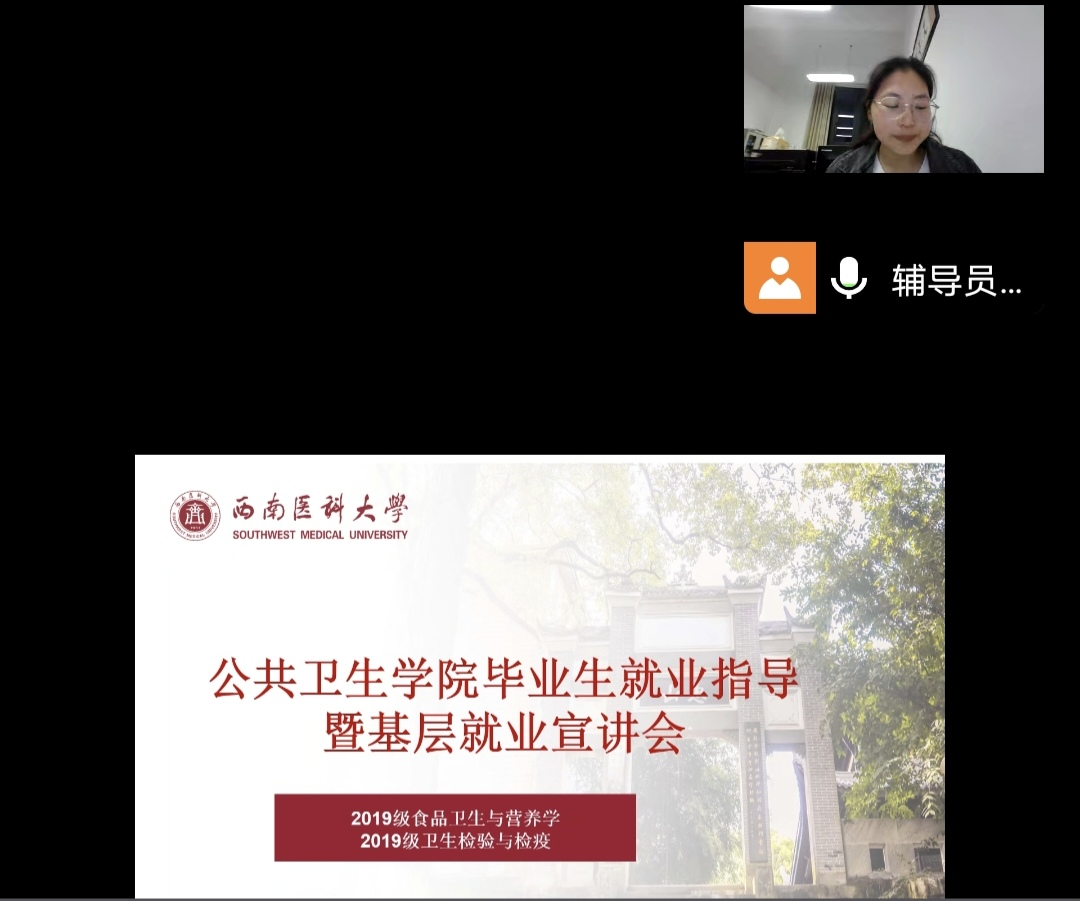 学生科甘雪辉老师就目前公共卫生领域的就业方向、就业平台和就业面试的注意事项做了相关的介绍,对三支一扶、西部计划相关政策进行宣讲。