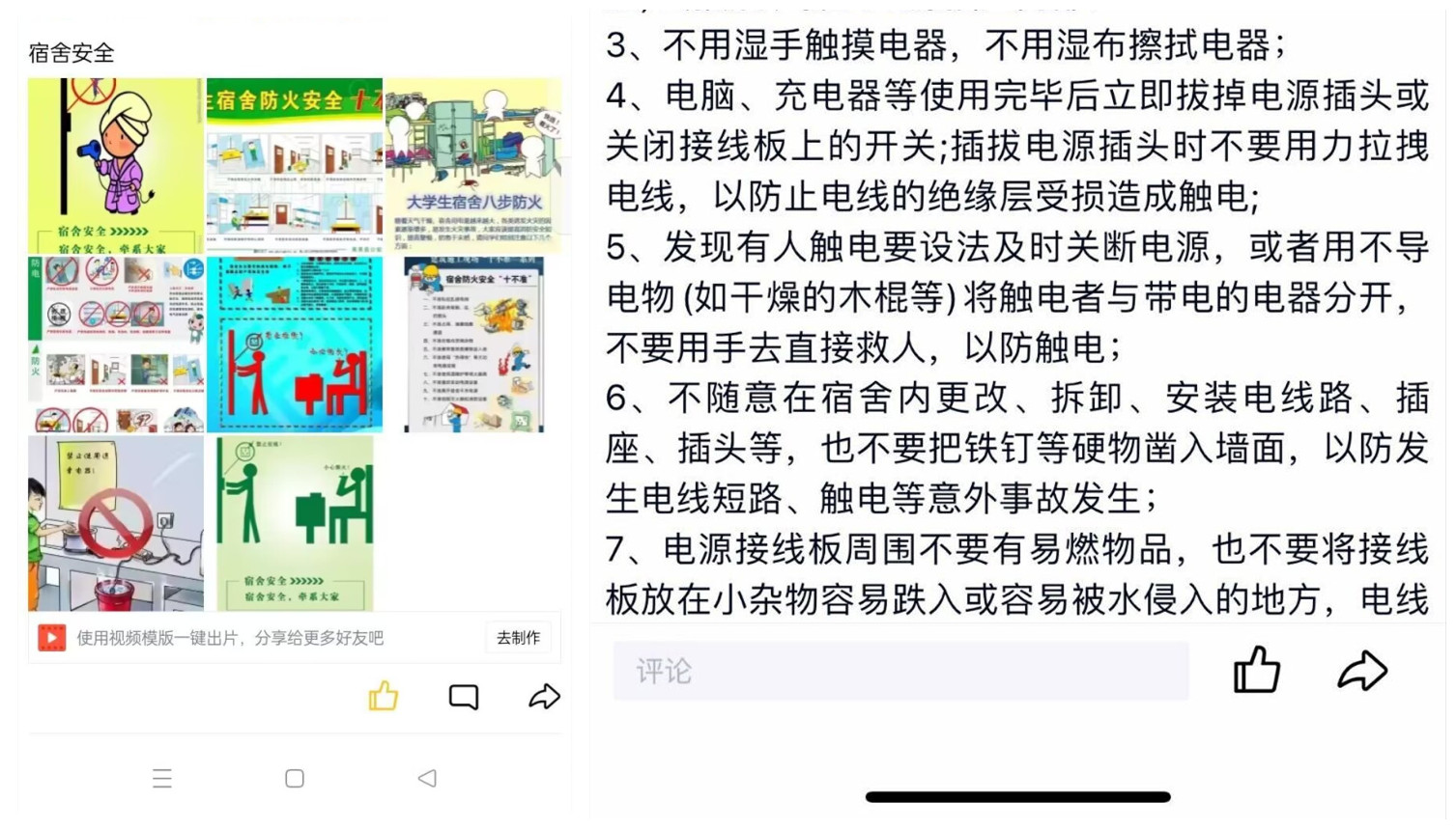 活动期间,同学们积极学习防溺水、防盗、防诈骗、火灾、交通等各类安全知识后,观看各类安全教育短视频,连续7天将学习内容和学习感悟通过不同形式分享到QQ空间并截图上传到活动群与同学们分享。此次活动得到了同学们的积极响应,共有140余人参加。在活动过程中同学们认真学习,内容全面,体会深刻。