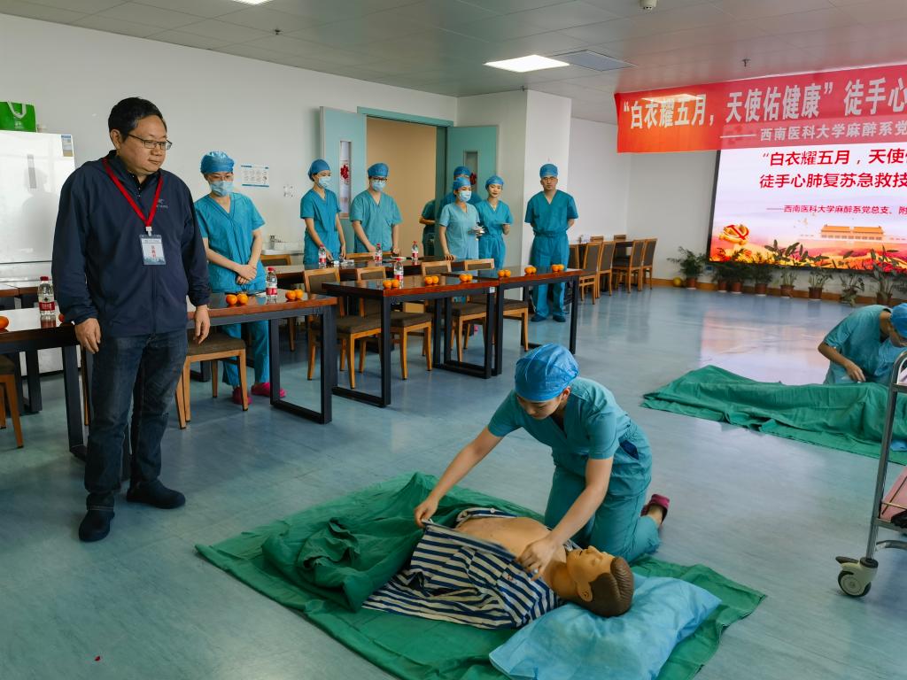 5月11日下午16:00,在西南医科大学附属医院康健中心院区手术室四楼,麻醉学系党总支携手第十一分工会以“爱的奉献—彰显护士风采”为主题开展了徒手心肺复苏急救技能竞赛活动。