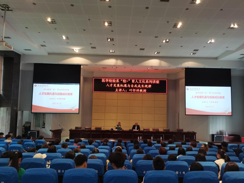 5月11日上午,由离退休工作处和医学检验系联合举办的学习贯彻习近平新时代中国特色社会主义思想主题教育暨医学检验系“检+”育人文化之生涯教育讲座在城北校区第二学术报告厅举行,本次讲座邀请原学校党委书记叶怀祥教授主讲,医学检验系党总支书记吕春、离退休工作处副处长杨潇、综合科副科长邓佳玲,医学检验系学生科全体辅导员及医学检验系2021级、2022级全体学生参加讲座。讲座由吕春主持。