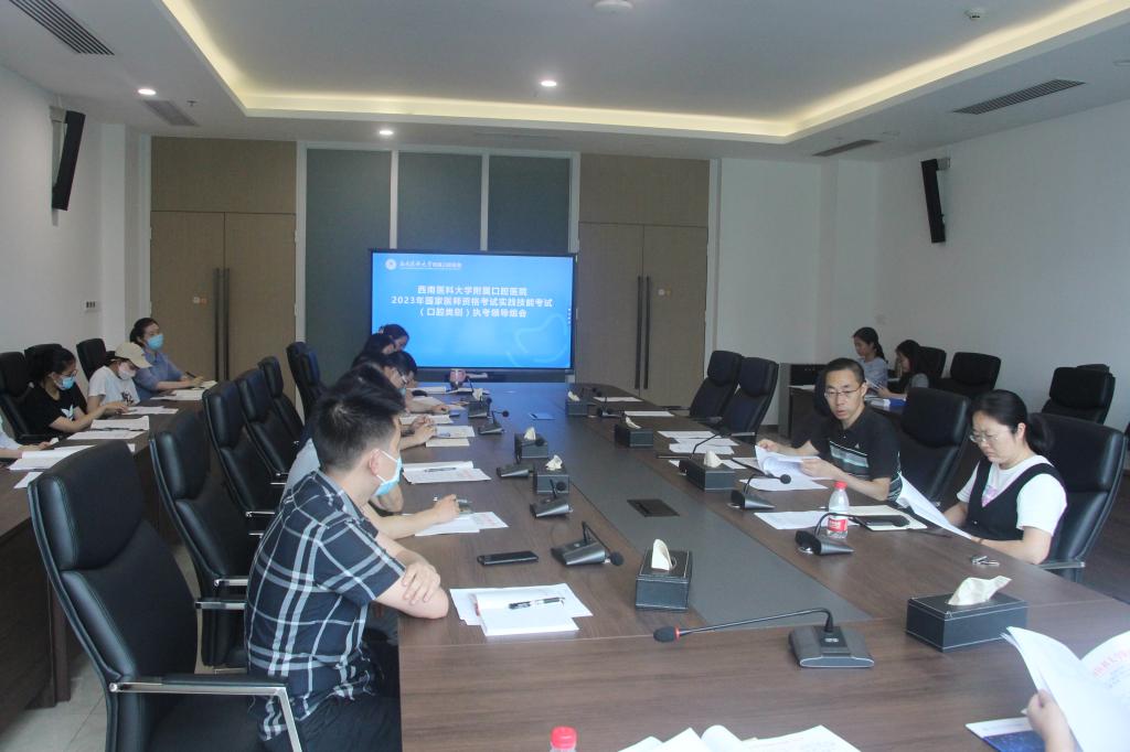 为保证6月3日、4日在本基地开展的2023年国家医师资格考试实践技能考试(口腔类别)执考工作顺利进行, 5月29日下午,医院在行政楼四楼一会议室召开2023年国家医师资格考试实践技能考试(口腔类别)工作领导小组会议,全体执考工作领导组成员和执考办工作人员参加了会议,会议由副院长郭玲主持。