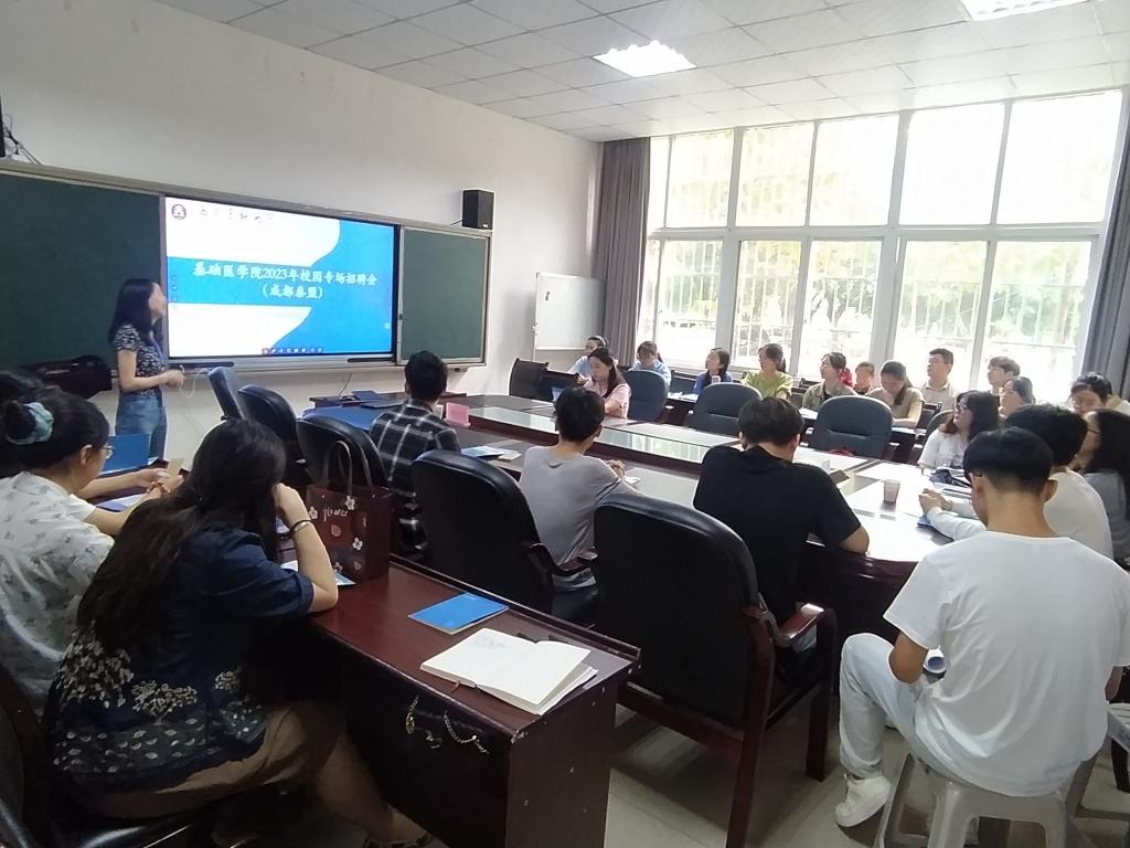 陈才兰通过播放企业宣传片、PPT等形式向与会人员详细介绍了企业概况、发展通道、薪酬福利、招聘需求等具体情况。参会同学围绕专业需求、岗位前景、具体工作内容同招聘人员进行了现场交流。陈才兰对同学们的问题进行了逐一解答,十分看好基础医学专业前景,希望能够吸纳更多的优质人才。