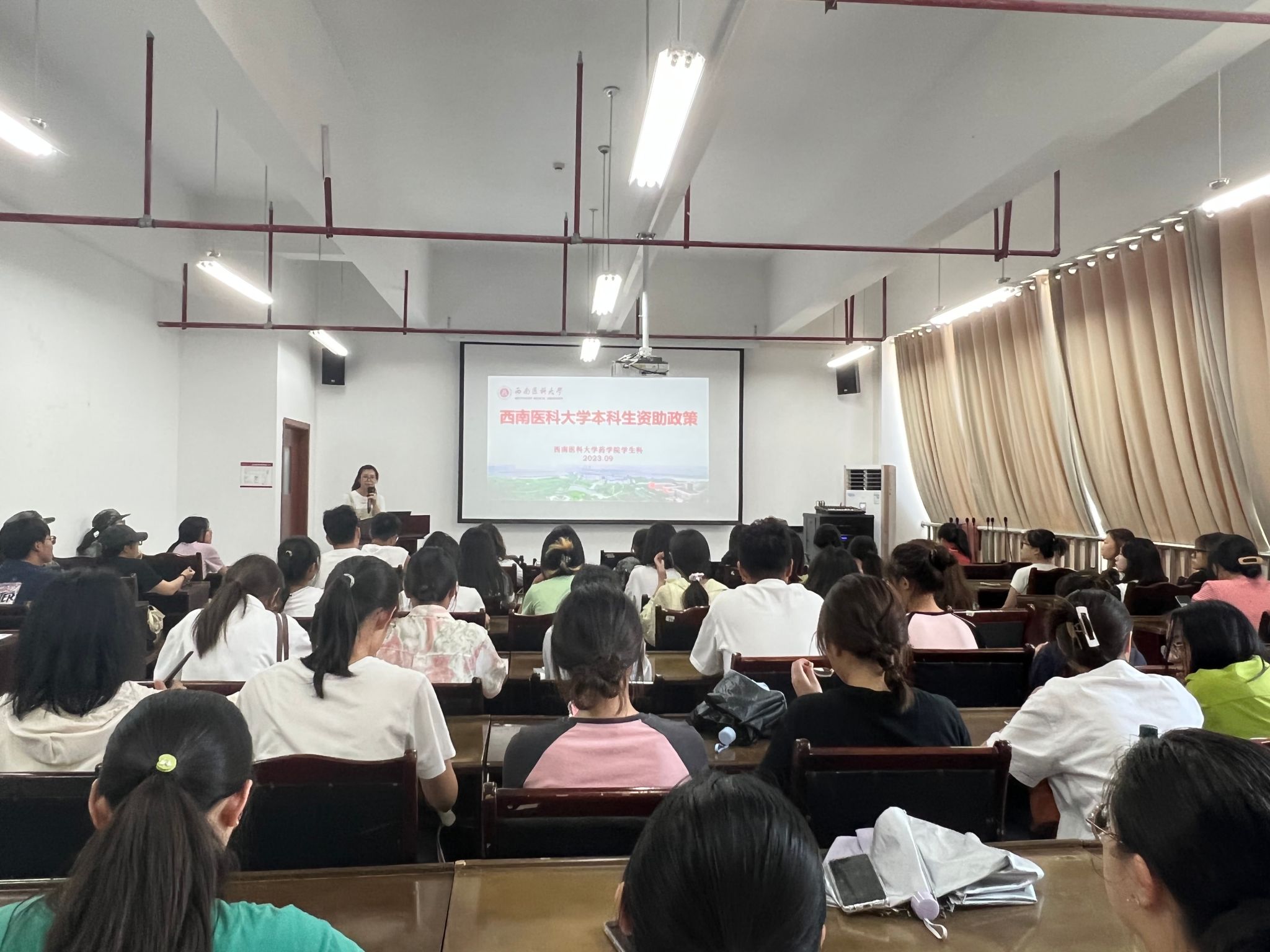 9月7日,药学院学生科副科长闫洁洁及各年级辅导员在弘润楼303室召开了本科生资助政策宣讲会,药学院各年级班长、生活委员参加了此次宣讲会。