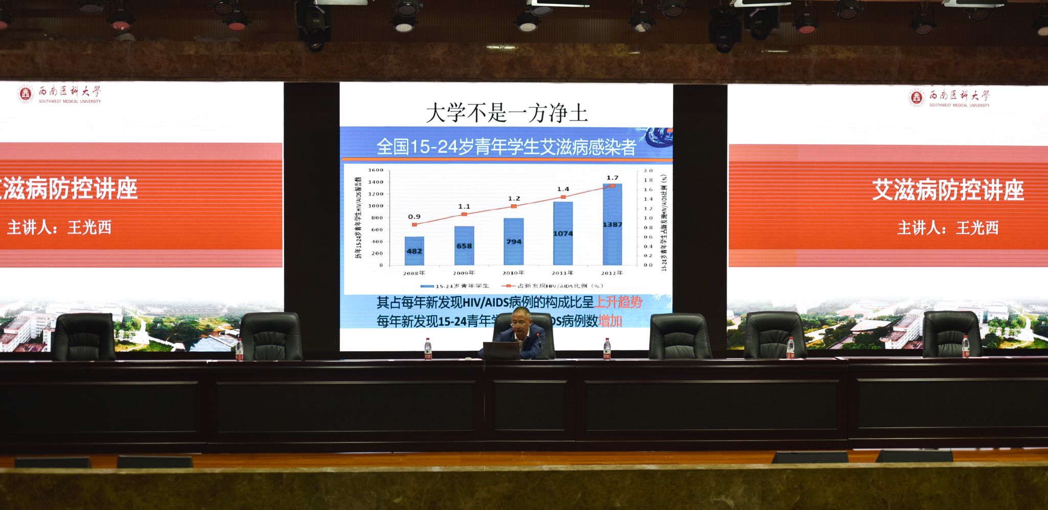 王光西教授以幽默风趣的讲授方式、生动形象地为同学们介绍了艾滋病的发现过程、我国目前的流行状况、艾滋病的传播方式以及四川省的流行情况和防控措施。他强调同学们要时刻保持警惕,加强自我保护意识,并呼吁同学们共同关注艾滋病防治工作,为构建健康和谐的社会作出贡献。