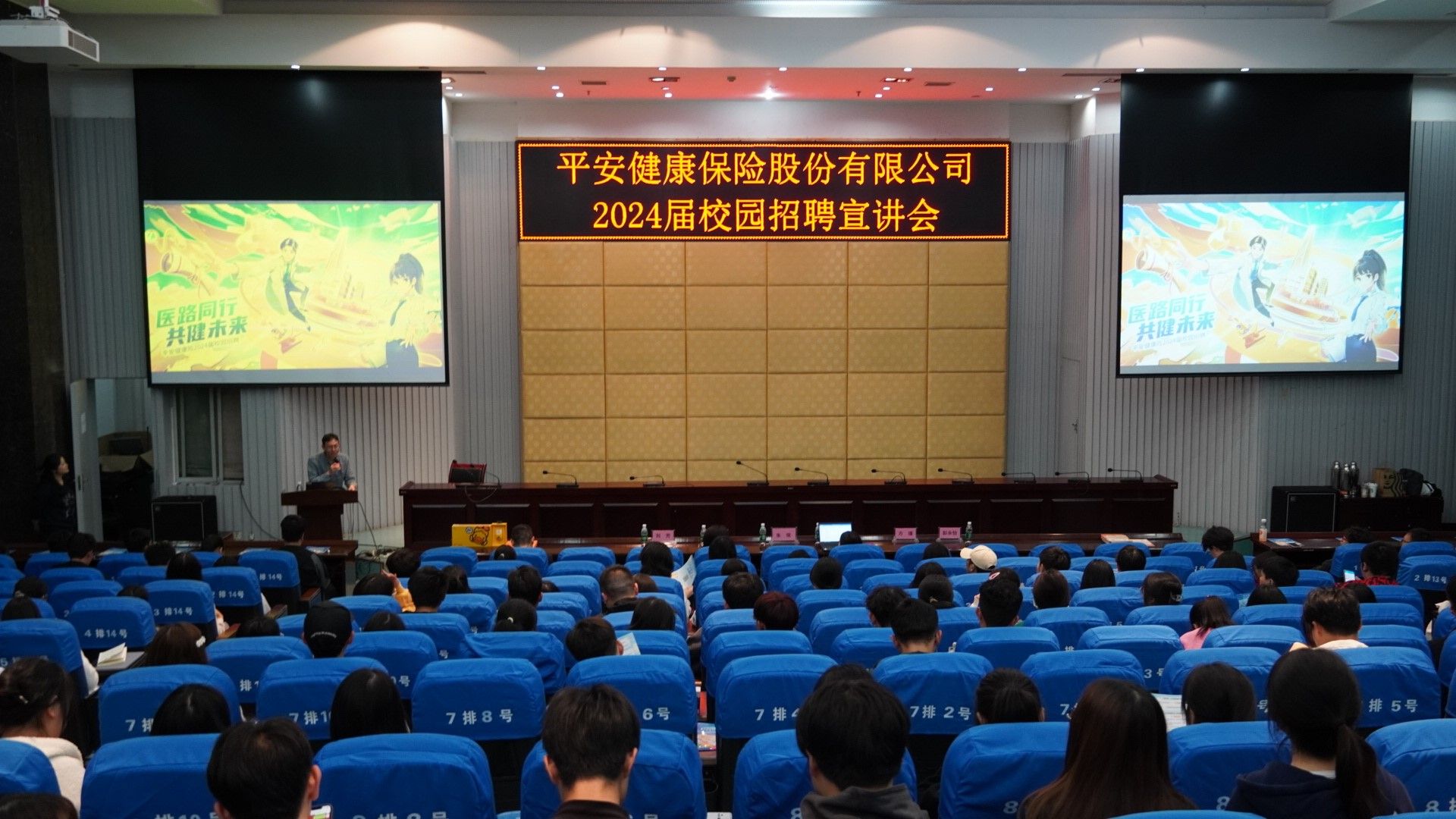 10月19日晚,人文与管理学院邀请平安健康保险股份有限公司在图书馆学术报告厅成功举办了平安健康险2024届校园招聘宣讲会。本次活动旨在向学院广大优秀大学生介绍公司的发展情况、招聘岗位以及求职机会,并与我院学生进行面对面的交流互动。平安健康保险股份有限公司总部医健数据项目组高级总监朱珉,人力资源部总经理方瑾,人力资源部主管彭永怡,人力资源部招聘负责人杨晓雪、郑智蕾、刘芳以及人文与管理学院劳动与社会保障专业教研室主任王敏、教师叶子轶,2020级全体同学,2021、2022级劳动与社会保障专业全体同学参加了本次宣讲会。宣讲会由学院学生科副科长陈旭主持。