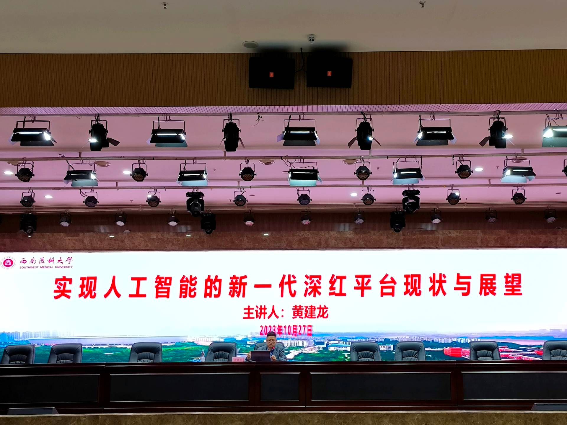 10月27日,由西南医科大学科技处主办,医学信息与工程学院承办的学术报告会在我校第一学术报告厅举行。本次报告会的主题为“实现人工智能的新一代深红平台现状和展望”,旨在提高全校师生对人工智能领域的认识与理解,通过与人工智能方面的专家互动交流来激发学生对人工智能领域的兴趣与热情,从而启发更高的个人学术目标。本次学术报告会邀请了中国科学院客座研究员黄建龙作报告,医学信息与工程学院副院长黄志伟主持会议。