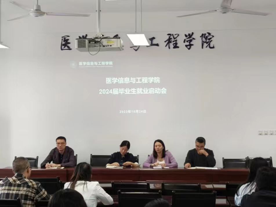 为确保 2024 届毕业生就业工作有序推进,做深做实做细就业服务与指导,促进毕业生高质量充分就业,医学信息与工程学院近日在文渊楼325召开了2024 届毕业生就业动员会。出席本次会议的人员有学院行政班子成员、全体就业指导老师。会议由刘梦萝主持。