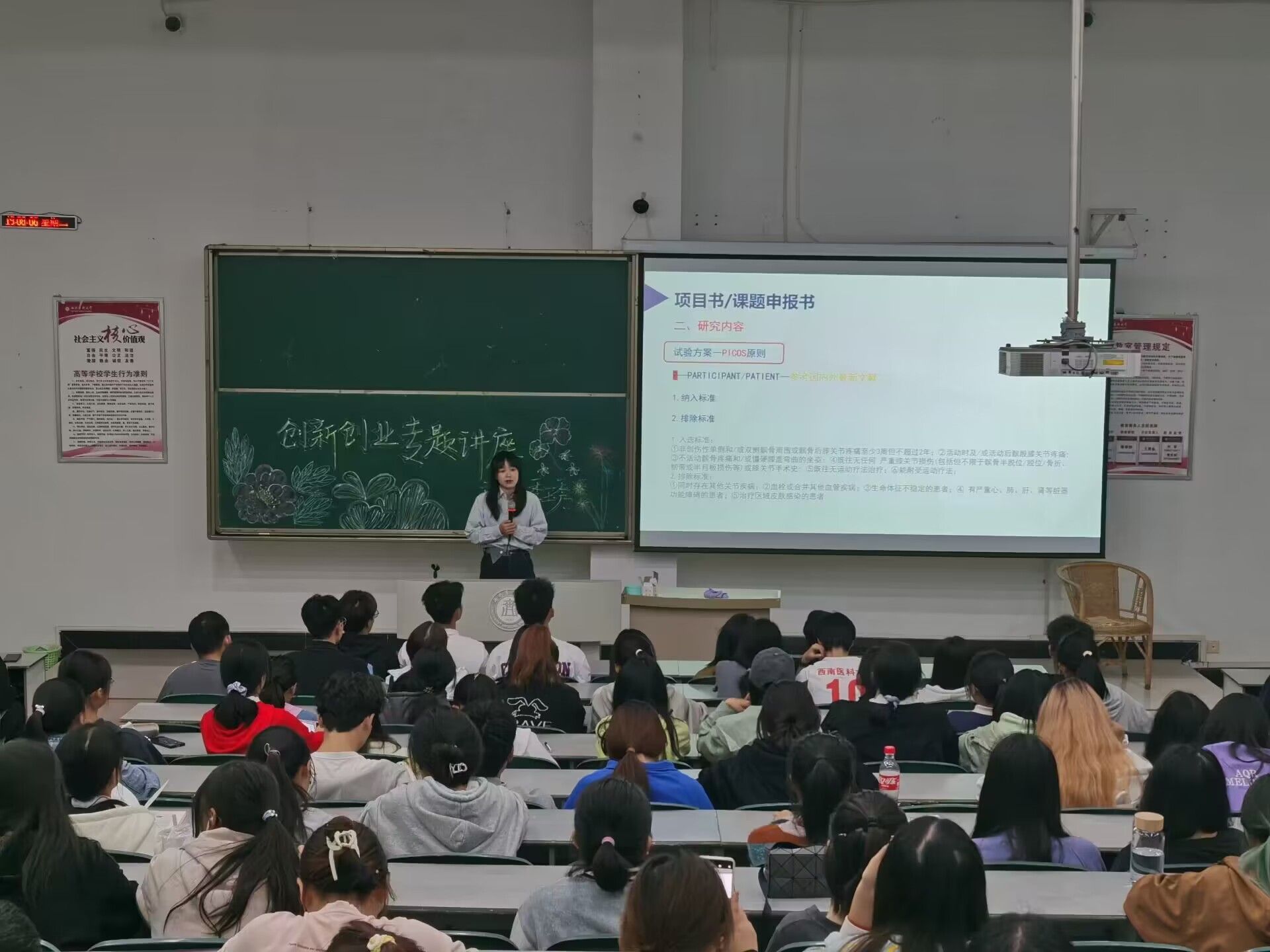 为深入贯彻落实党的二十大精神,推进大众创业万众创新,提高创新创业意识,增强创新创业能力,康复医学系近日于荟文楼301教室举办了第九期创新创业专题讲座,本次讲座由康复医学系教师季玉秀主讲,共200余名同学参加。
