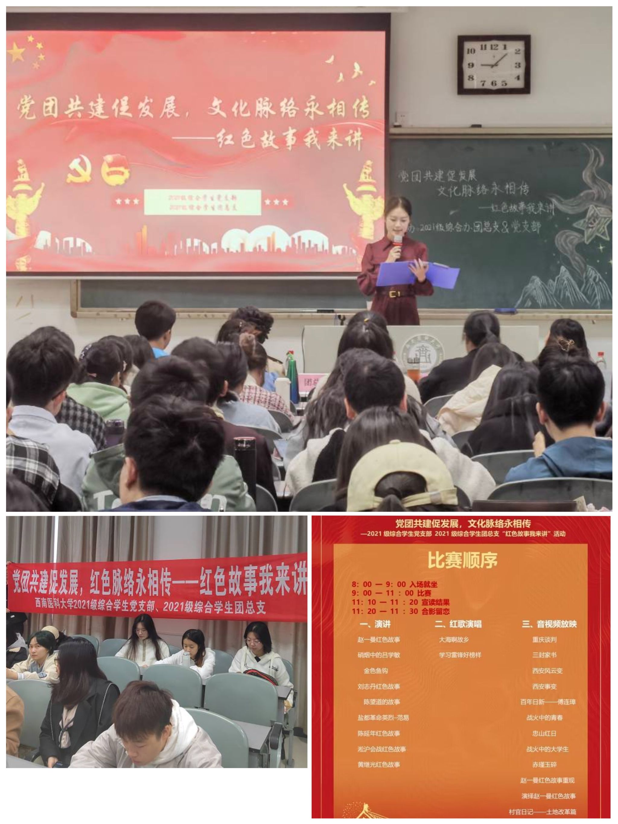 为帮助同学们进一步弘扬和传承红色文化, 11月12日,基础医学院2021级综合办党支部协同团总支组织开展以“党团共建促发展,文化脉络永相传”为主题的、“红色故事我来讲”系列党建活动。本次活动由综合办学生会承办,邀请基础医学院党委专职组织员、关工委常务副主任赵珍先及2021级综合办辅导员谢雨欣担任评委。