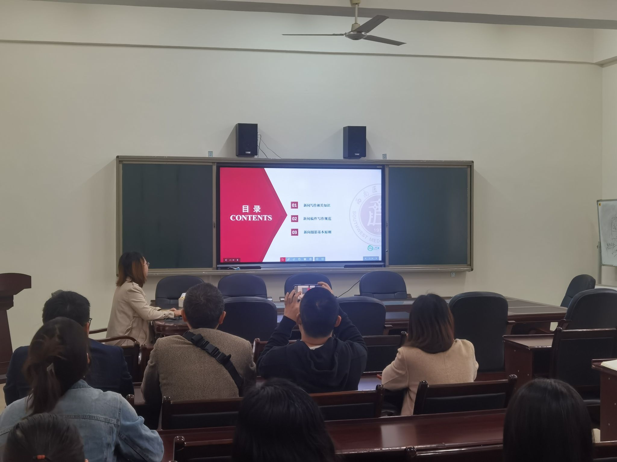 为了加强宣传工作,提高宣传员队伍的业务能力, 11月24日上午,基础医学院在鸿文楼4楼会议室召开宣传员培训会,特邀学校党委宣传部·统战部宣传科·融媒体中心科员王友聪作题为《宣传员如何撰写新闻稿件》的讲座,学院行政科室人员、教研室和实验室宣传员、研究生和本科生学生代表参加了培训。