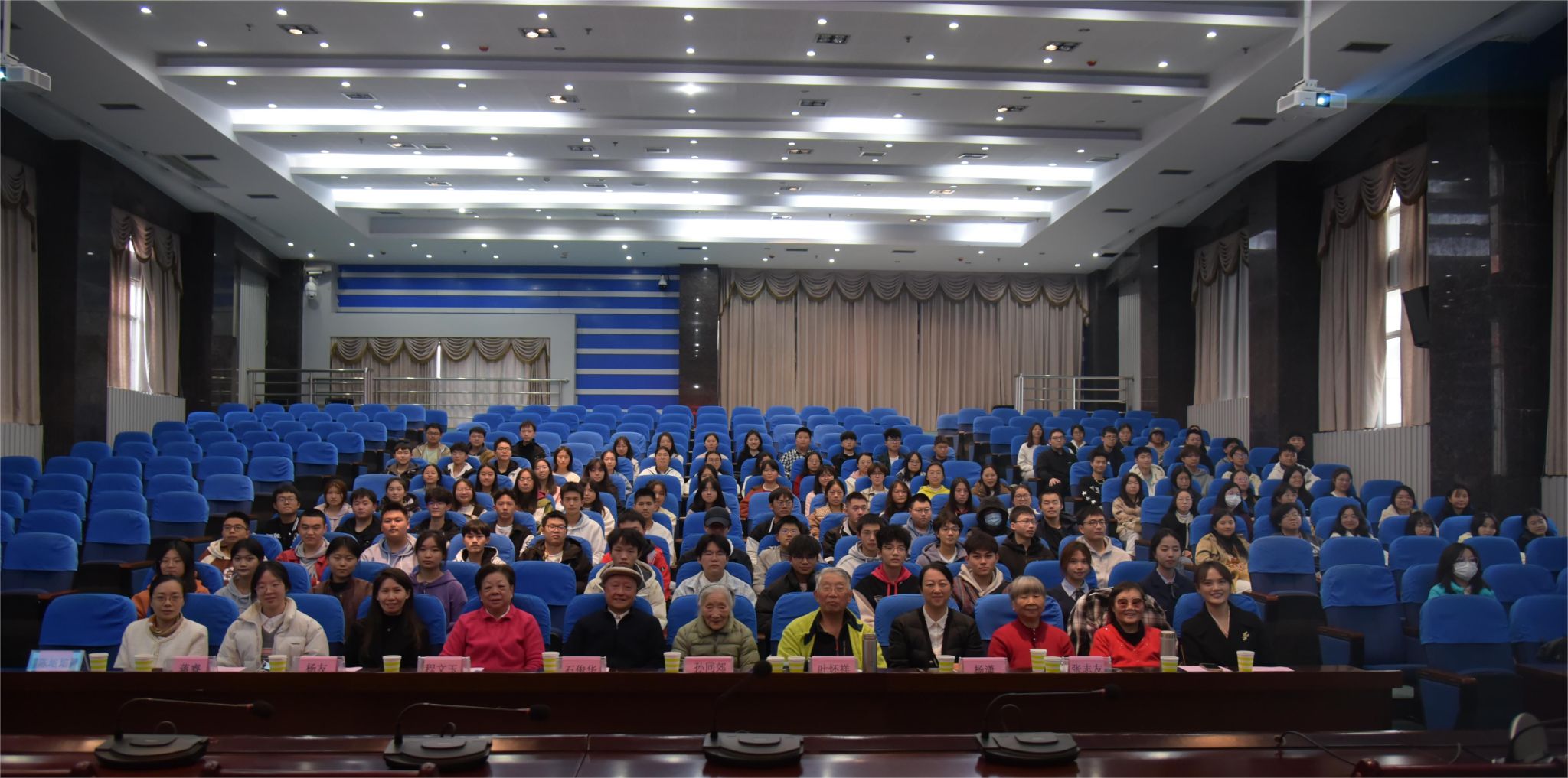 为激励儿科学子不忘初心、砥砺前行,激发大家锐意进取的勇气,11月23日,儿科学系在城北校区第二学术报告厅举办了“流金岁月”系列活动之“助、逐、筑”梦计划思想政治教育主题讲座。此次活动有幸邀请到离退休党委第五党支部书记、关工委常务副主任、原学校党委副书记程文玉,全国名中医、原学校副院长孙同郊,关工委副主任、原学校党委书记石俊华、叶怀祥,离退休党委第五党支部支委、原机关党总支副书记张志友,离退休党委书记、离退休工作处处长李建英,离退休工作处副处长杨潇等领导和前辈莅临现场,儿科学系党总支书记杨敏、儿科主任刘文君、儿科副主任雷小平、学生科副科长张玲萍、专职组织员杨友、全体辅导员及2023级儿科学本科学生参与了此次活动。