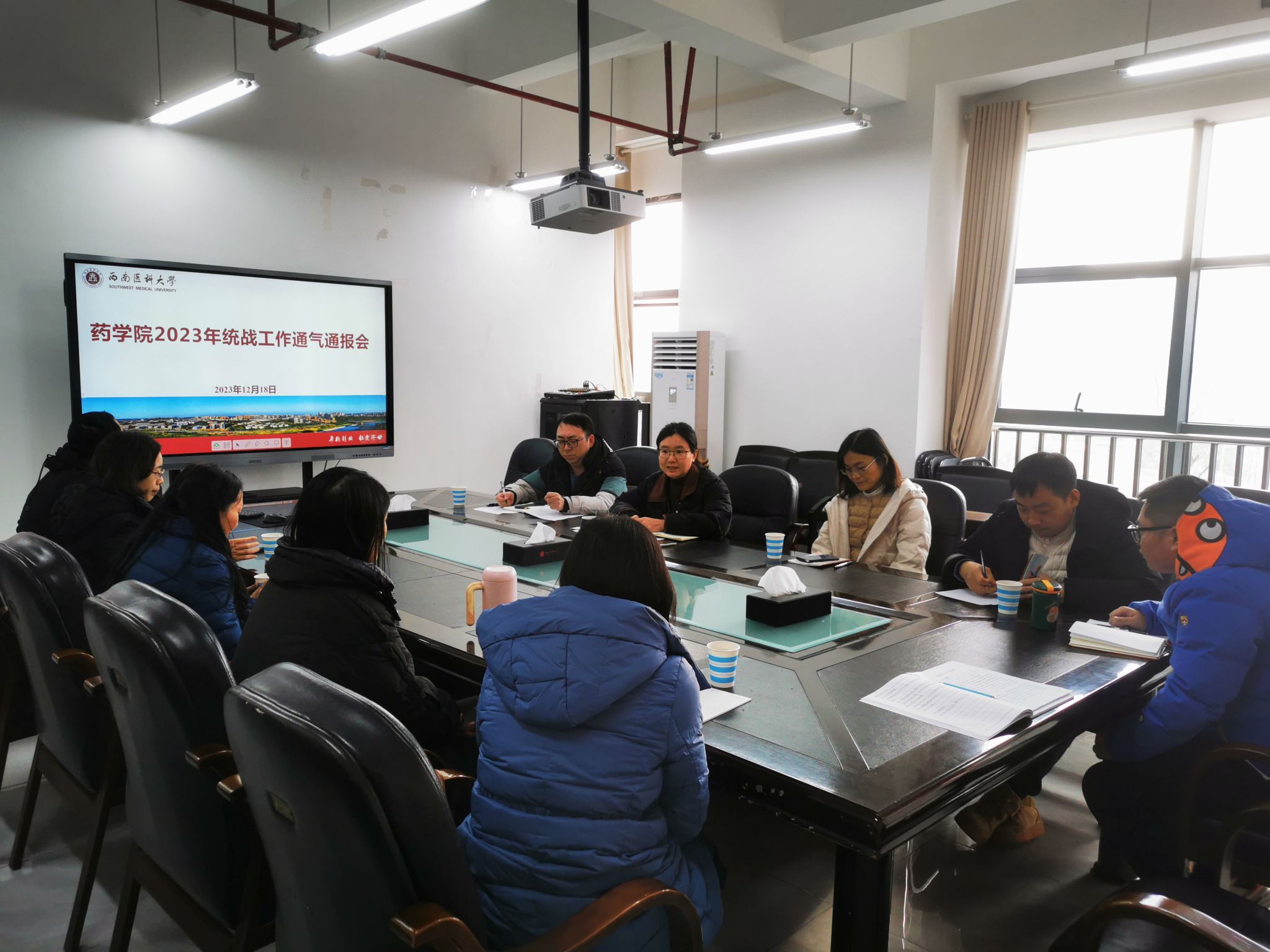 为推进统一战线工作,进一步凝聚人心、汇聚力量、形成合力,充分发挥统战人士在药学院发展中的作用,12月18日,药学院在弘润楼333会议室组织召开了2023年药学院统战工作通气通报会。药学院党委书记唐艳斌、党委副书记·纪委书记章卓、党政办公室主任陈志宇、各民主党派、无党派人士及学院统战委员参加了会议。会议由唐艳斌主持。