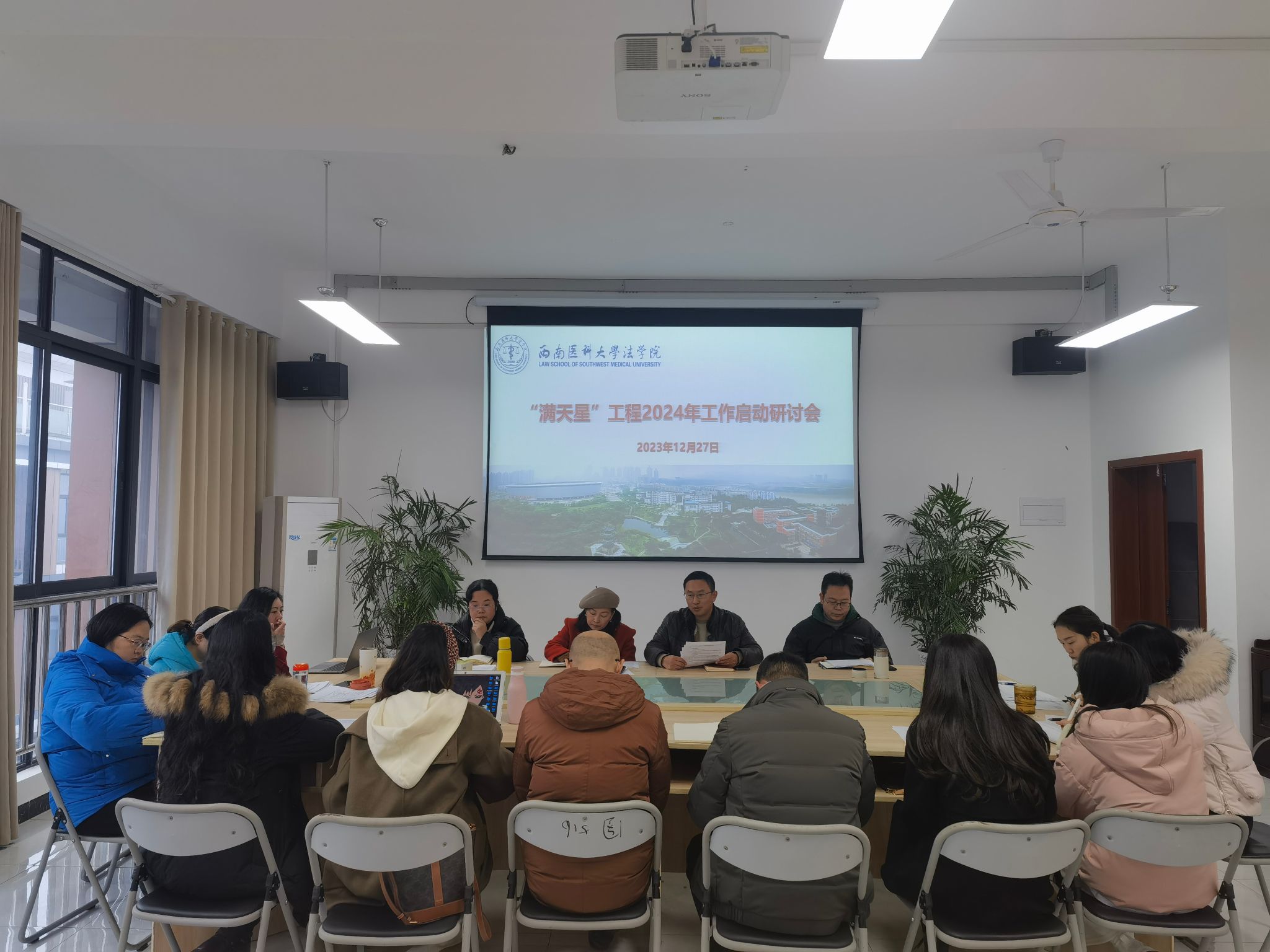 我校与纳溪区人民政府共建的乡村法治振兴“满天星”工程已开展了为期两年的法律咨询与服务,为总结经验,不断完善工作机制,2023年12月27日,法学院召开“满天星”工程2024年工作启动会,专题研讨和布置相关工作。学院党委书记廖女男,党委副书记、院长罗刚,党委副书记黄莉,副院长先德奇及2024年新一轮“满天星”工程选聘老师和学生代表参加了会议。会议由黄莉主持。
