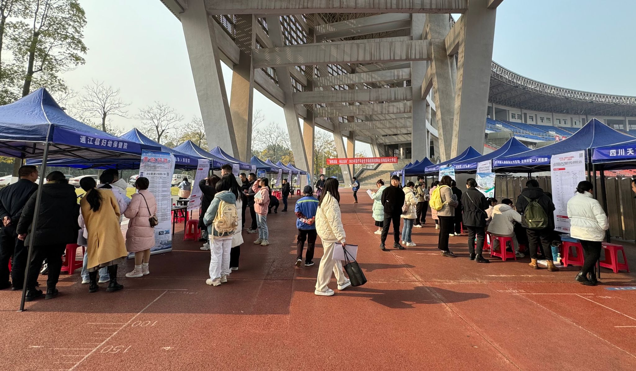 12月27日下午,学校与医招网联合举办的“扬帆起航·研后送岗”2023年医疗毕业生专场招聘会在城北校区奥体中心主体育馆举行。