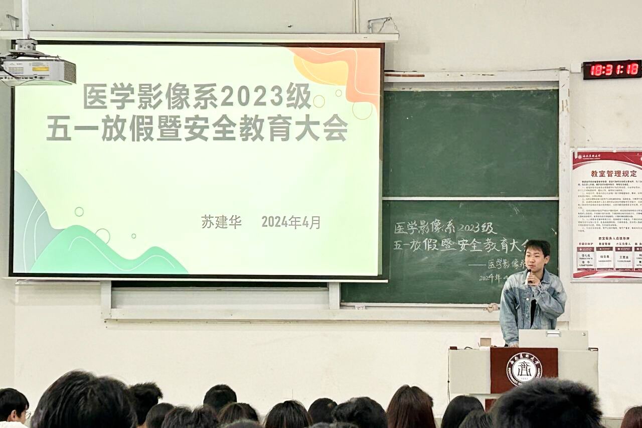 为进一步落实学校学生安全教育管理工作要求,增强学生五一放假安全防范意识,医学影像系于4月25日下午在城北校区明理楼105教室召开了低年级五一假期安全教育大会,会议由辅导员苏建华主讲。