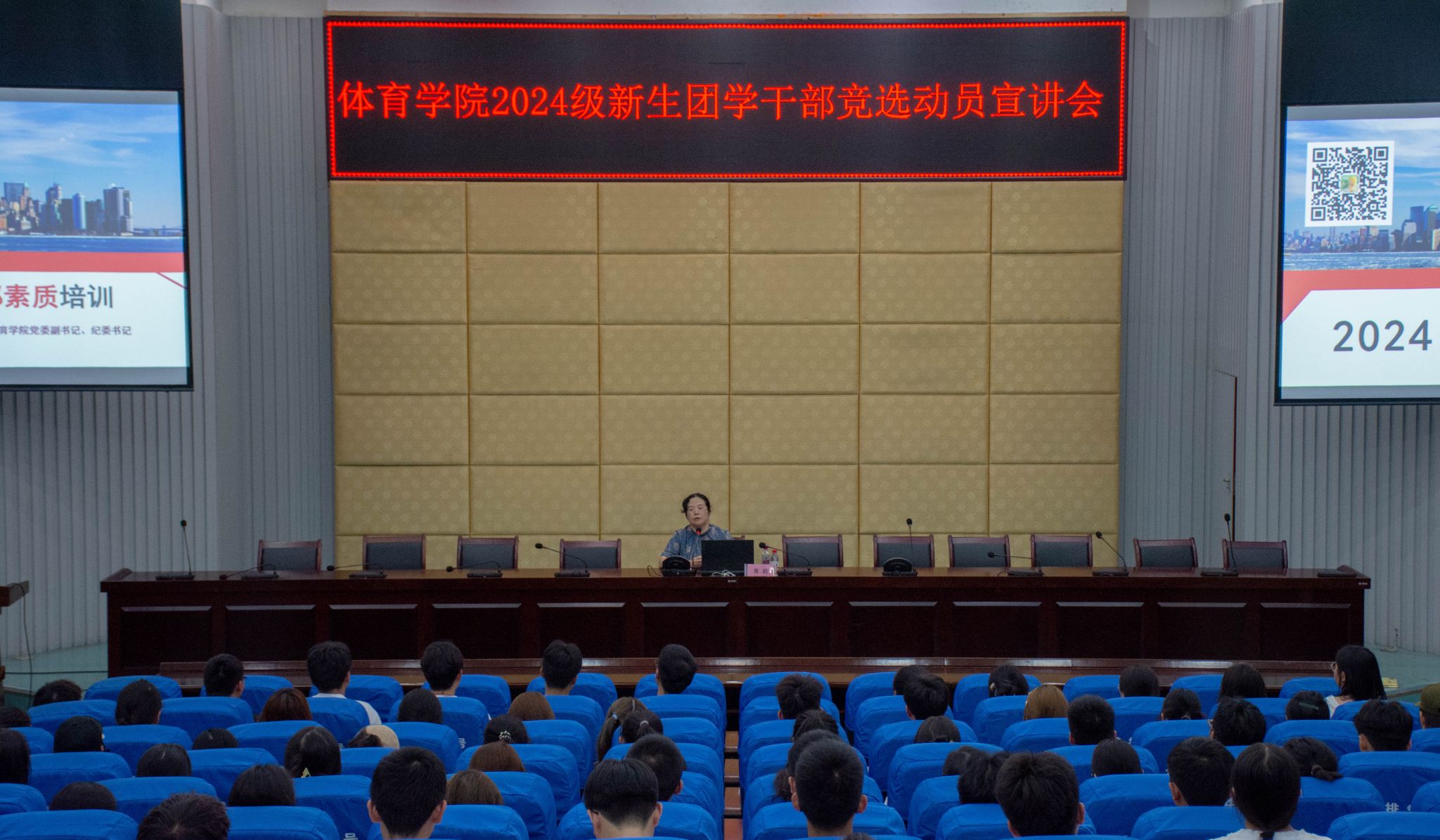 9月6日晚,体育学院在第二学术报告厅召开了2024级新生团学干部竞选动员宣讲会。体育学院党委副书记黄莉、分团委书记刘泸、辅导员凌海春,体育学院2024级新生以及学生会成员参会。