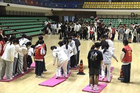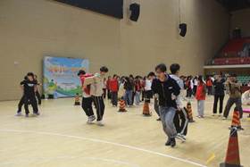 比赛当天,体育馆内人声鼎沸、暖意融融,处处洋溢着青春的朝气与协作的热忱。“千军万马过独木桥” 项目中,支部成员手挽手、肩并肩,小心翼翼地在地垫上稳步前行,身后队友们整齐的呐喊助威声此起彼伏;“夹球挑战赛” 里,搭档们默契配合,稳稳地夹住篮球快速跑动,时而因小小的失误引发阵阵欢笑,时而因顺利通关响起热烈掌声;“一掷千金” 和 “十拿九准” 的赛场边,选手们凝神聚力、精准投掷,围观同学屏息期待,每一次成功命中都能点燃全场欢呼。大家脸上洋溢着汗水与笑容,不分院系、不分支部,大家在竞技中增进了解,在协作中凝聚情谊,充分展现了基层团支部的蓬勃朝气与团结力量。