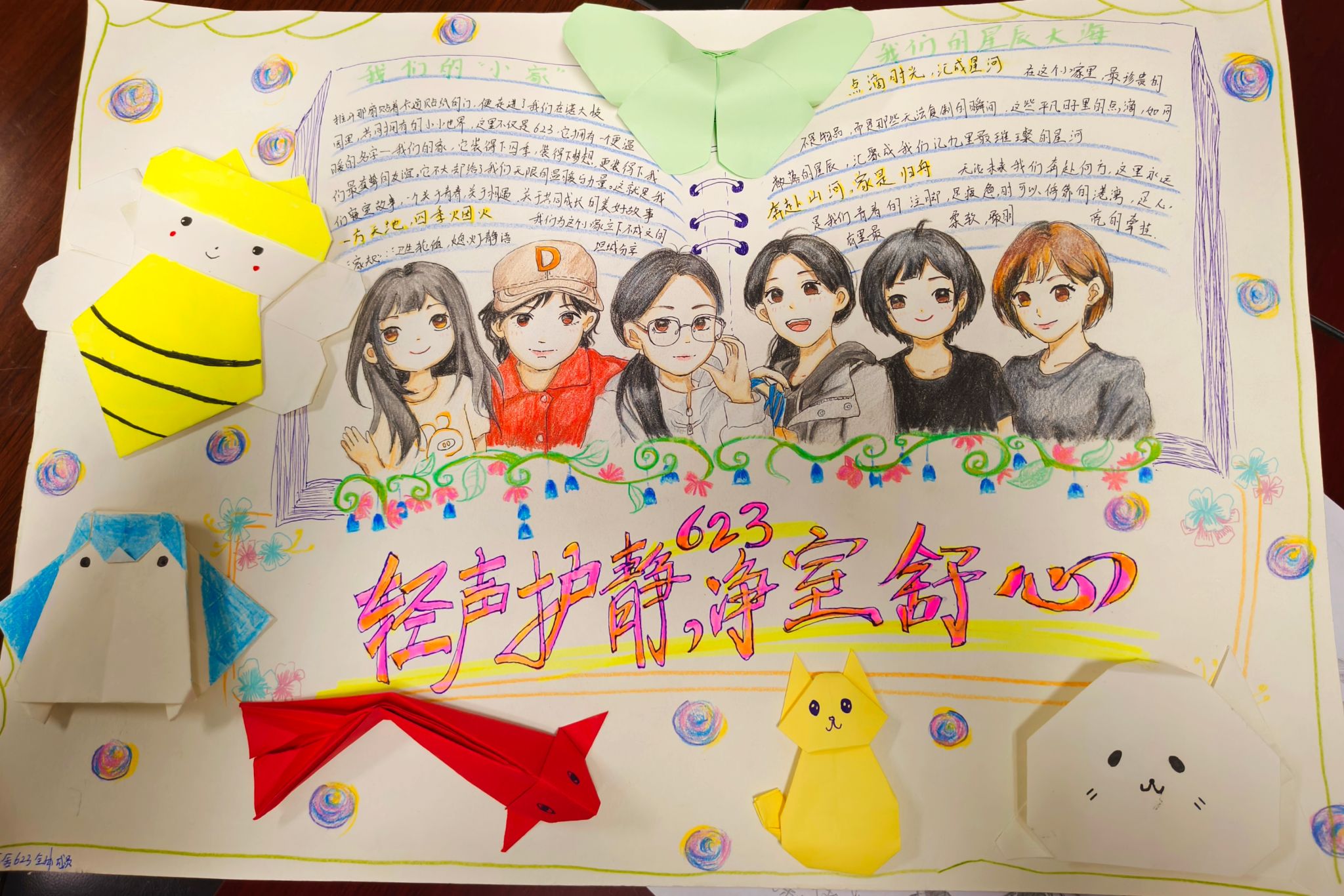 活动中,各寝室秉持着“自主讨论,共同协商”的原则,制定了最新宿舍公约,行为准则,内容涵盖卫生轮值、作息时间、个人期许等。手抄报的风格各异,从不同角度展现了信工学子的青春风采。本次比赛作品内容丰富,既有对宿舍日常点滴的生动描绘,也有对同窗情谊的真挚赞颂,更不乏对校园生活的美好憧憬。同学们巧妙运用色彩与构图,将宿舍的整洁雅致、室友间的互助友爱融入画作中,每一幅作品都凝聚着团队协作的智慧,彰显着青春向上的活力。