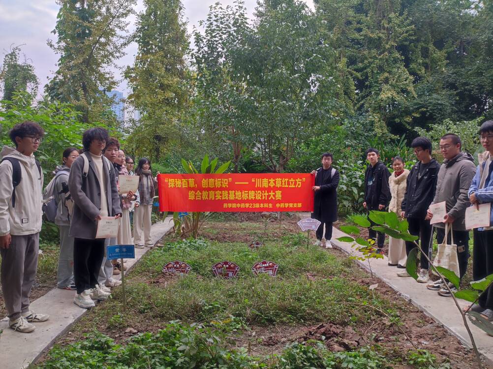 11月21日,“川南本草红立方”实践基地标牌设计大赛插牌仪式在川南特色植物园顺利举行。此次比赛由张春教授带队统筹,中药学专业老师和药学院学生会协同推进,以中医药文化传承为核心,旨在为“川南本草红立方”实践基地药用植物设计标识牌,增强中药学专业学生对中草药的认识与实践能力。