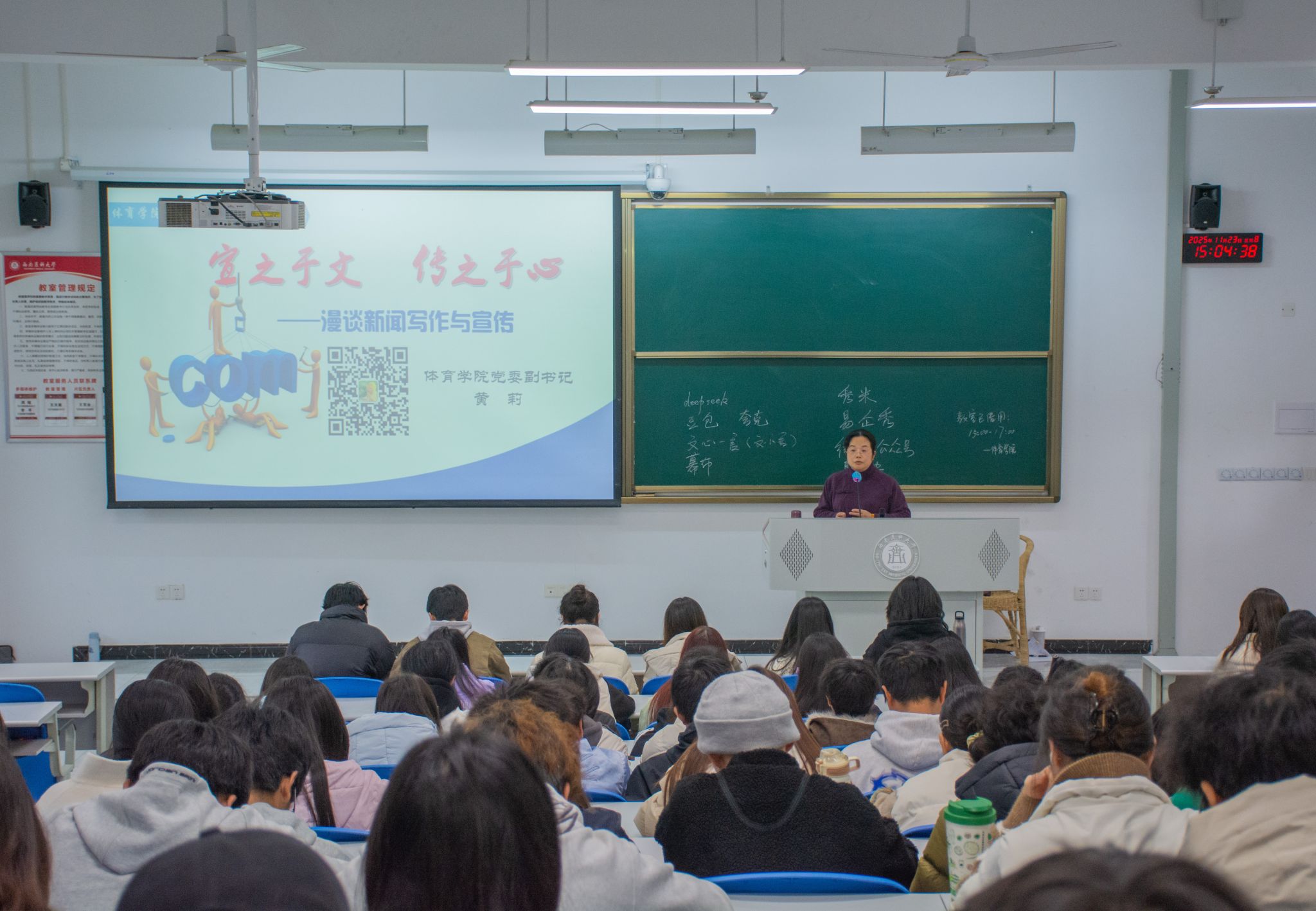 为加强学生骨干队伍建设,提升新闻宣传技巧,11月23日,体育学院分团委在学海楼203教室举办新闻宣传专题培训。体育学院党委副书记黄莉担任主讲,学生会全体成员参加,培训由体育学院分团委书记刘泸主持。