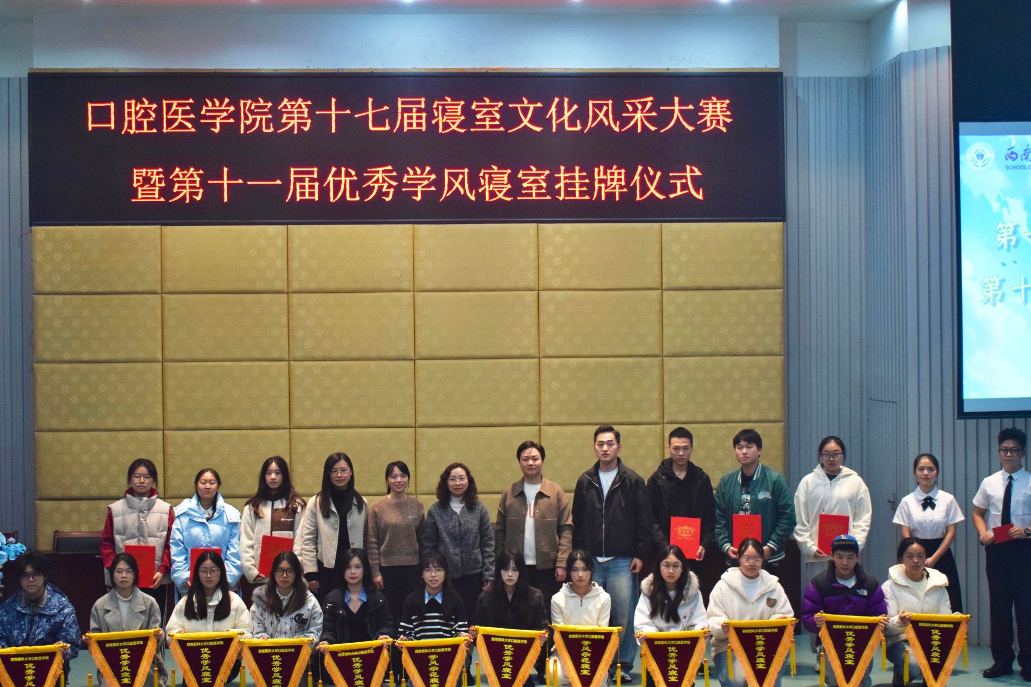 11月28日,口腔医学院第十七届寝室文化风采大赛暨第十一届优秀学风寝室挂牌仪式在第二学术报告厅举行。口腔医学院·附属口腔医院党委副书记、纪委书记黄钰,学生科科长闫洁洁,团总支书记雷杰及学院兼职班主任代表周会、解静等出席活动。口腔医学2023级、2024级和2025级总计240名学生参加。