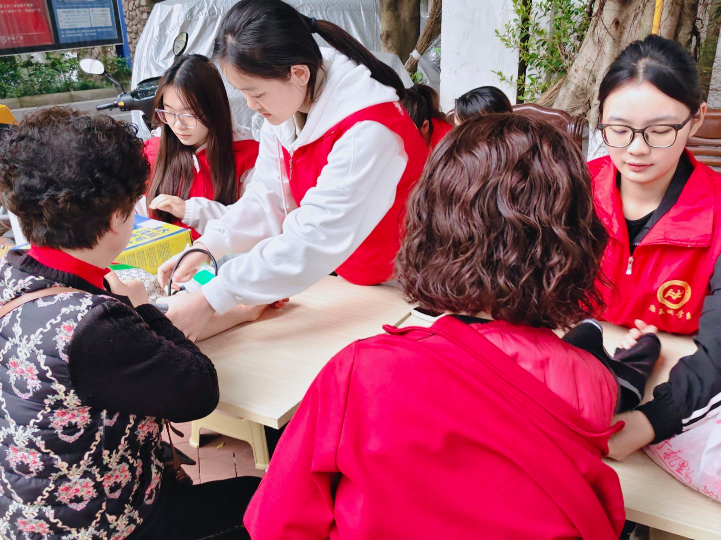 活动现场,志愿者们热情周到、分工协作,为社区居民提供免费血压测量服务。大家耐心细致地为居民测量血压、记录数据,结合专业知识讲解健康保养、慢病管理、合理作息等知识,认真解答老年群众关心的健康问题,用专业与温情传递关爱。同时,志愿者帮助社区积极开展防诈骗宣传,通过案例讲解、发放宣传资料等方式,普及电信诈骗、养老诈骗的常见手段,提醒居民提高警惕,守护自身财产安全。