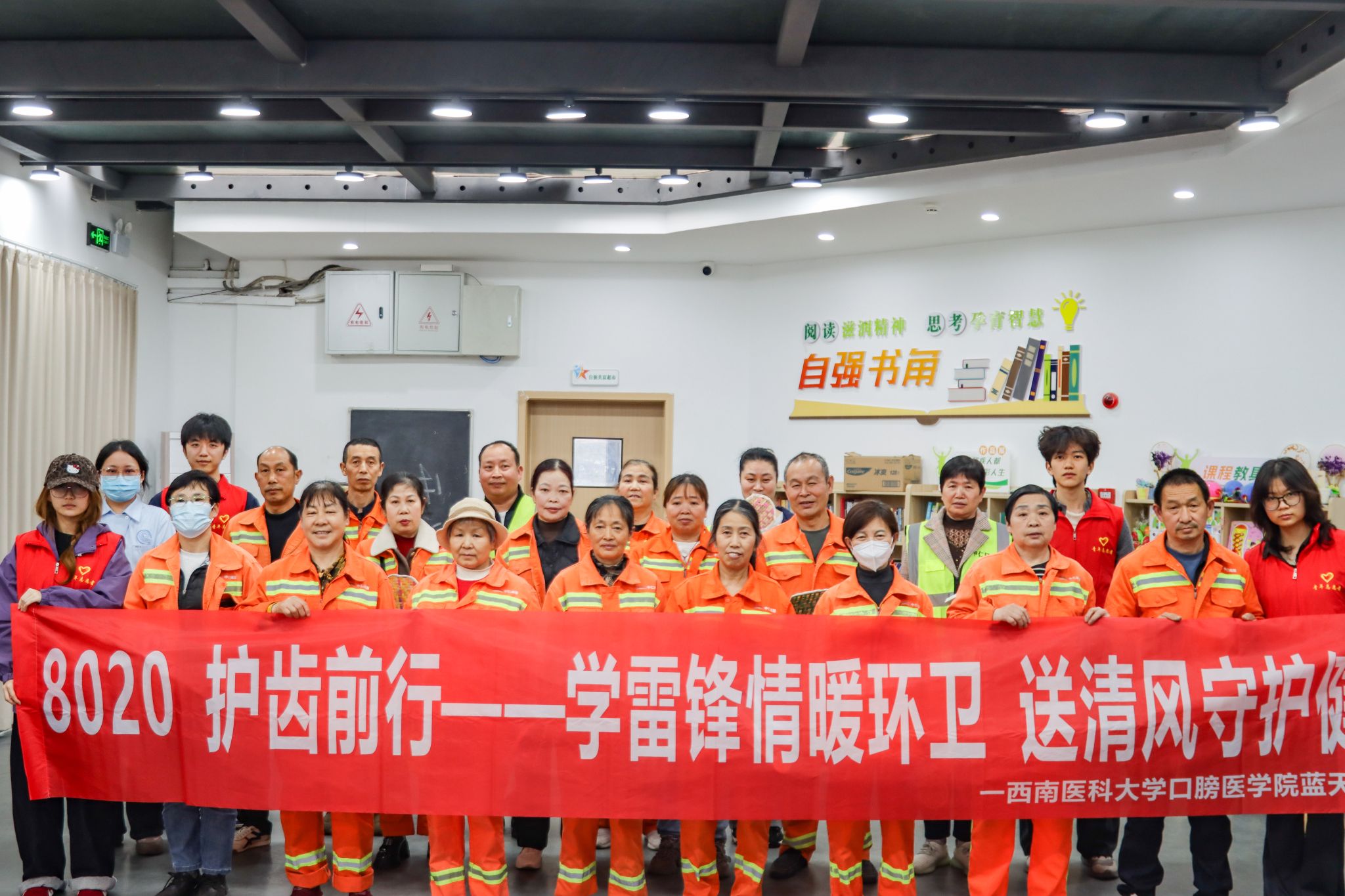 3月27日下午,口腔医学院联合龙马潭区红星社区,在社区党群服务中心开展“学雷锋情暖环卫,送清风守护健康”志愿服务活动,为辖区环卫工人送去专业的口腔健康服务与暖心物资,让雷锋精神在躬身实践中绽放出璀璨光彩。