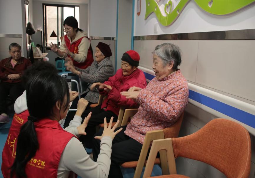 活动伊始,志愿者们分组走进老人房间,亲切问候并详细介绍活动流程;在互动体验环节,带领老人开展趣味手指操,通过握拳伸展等一系列简单易学的动作,帮助老人活动筋骨、舒活气血,现场其乐融融。随后开展的“清洁暖心行” 服务中,志愿者分工协作,用细致行动守护老人生活环境;最后的核心环节为“健康祝福站”艾草锤制作,手把手示范指导老人制作艾草锤,逐一讲解团艾、裹布、插柄、缠绳等步骤。在艾草芬芳中,老人们亲手完成养生锤制作,既掌握实用的居家保健技能,也收获了专属健康礼品,