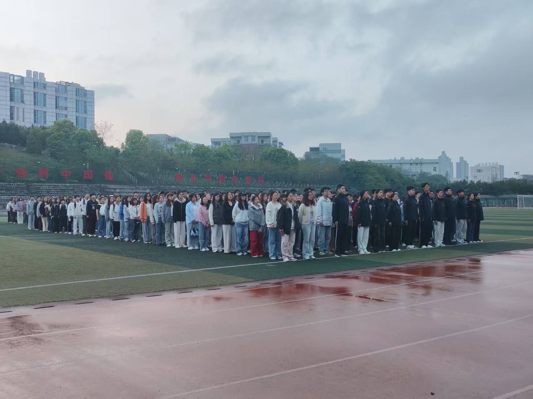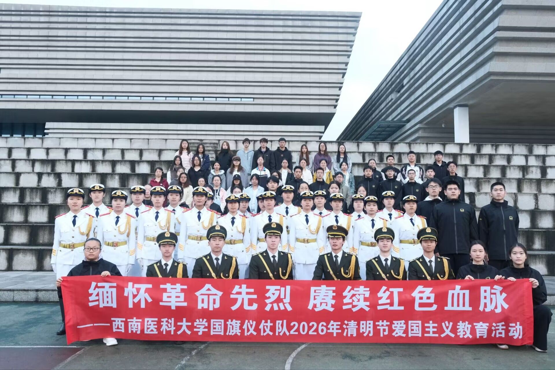 为缅怀革命先烈、传承红色基因,厚植青年学子爱国情怀,4月3日上午,我校国旗仪仗队联合七个学生团支部在城北校区青年体育场举行2026年清明节爱国主义教育活动。康复医学系学生党支部,2025级临床医学定向第三团支部,2025级麻醉学第一、二、三、五团支部,2025级运动康复第一团支部及学生代表等近500人参加活动。