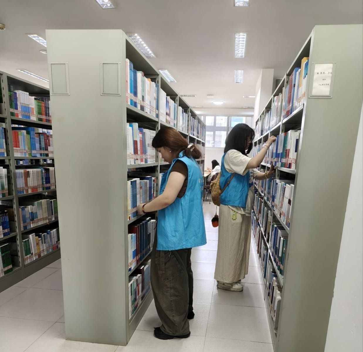 活动开始前,图书馆何雯、陈瑶老师对志愿者进行了统一培训,明确分工与注意事项。全体志愿者统一身着学院志愿马甲,分组前往青年体育场和逸夫图书馆,有条不紊地开展各项志愿工作。在青年体育场书展现场,15名志愿者主动投身借阅服务工作,耐心引导读者了解书展流程、协助办理借阅手续,同时认真维护现场秩序,主动解答读者疑问,用热情周到的服务为书展保驾护航,营造出浓厚而有序的书香氛围。与此同时,图书馆组的22名志愿者严格按照图书索书号,细致开展图书查架、排书整理工作,逐架排查、逐本归位,将错位、乱架的图书一一整理整齐,确保书架有序规范,为读者查找、借阅图书提供了便利。此外,志愿者们还积极向读者宣传文明借阅理念,倡导大家爱护图书、遵守借阅规则,用实际行动展现了外国语学院学子积极向上、乐于奉献的良好精神风貌。