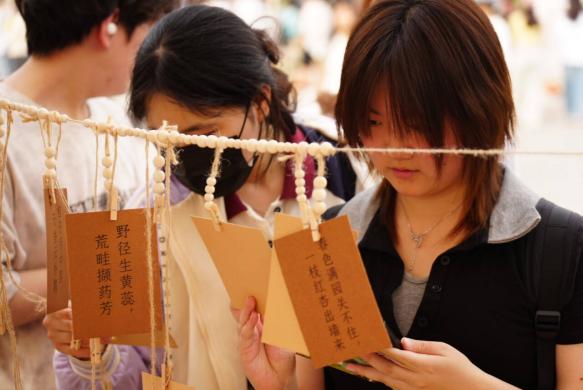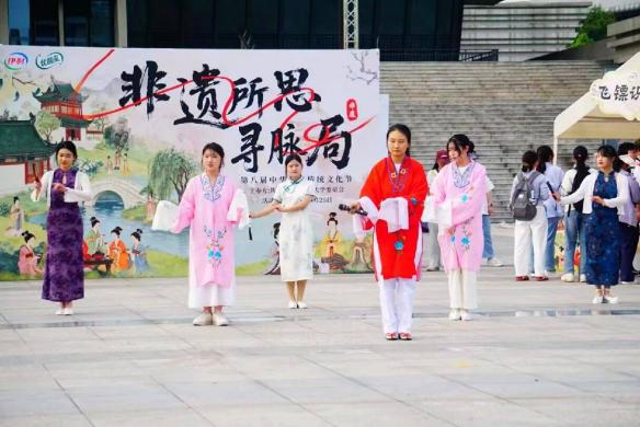为赓续中华千年文脉,推动非物质文化遗产、中医药文化等优秀传统文化有机融合与活态传承,坚定青年学子文化自信、厚植家国情怀,4月25日,校团委在城北校区青年体育馆前成功举办第八届中华优秀传统文化节之“非遗所思寻脉局”春日市集活动。本次活动以沉浸式互动市集为载体,设置隋唐风华阁、宋元医承阁、明清药萃阁三大时空版块的12个摊位,辅以国风舞乐表演,吸引全校500余名师生积极参与,共同开启溯古寻脉、传承文明的文化之旅。