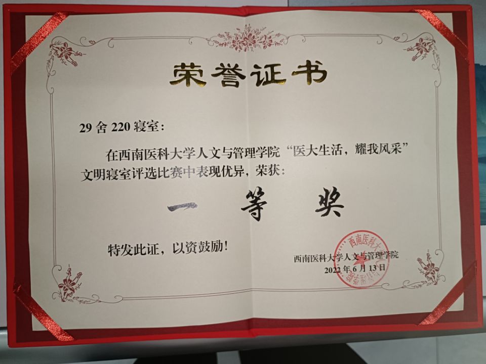 大学寝室是大学生学习和生活的家园,也是高校校园文化建设的展示窗口,为进一步推进文明寝室建设,营造温馨舒适的寝室环境,人文与管理学院于五月中旬至六月底期间举办了以“医大生活•耀我风采”为主题的文明寝室评比大赛。