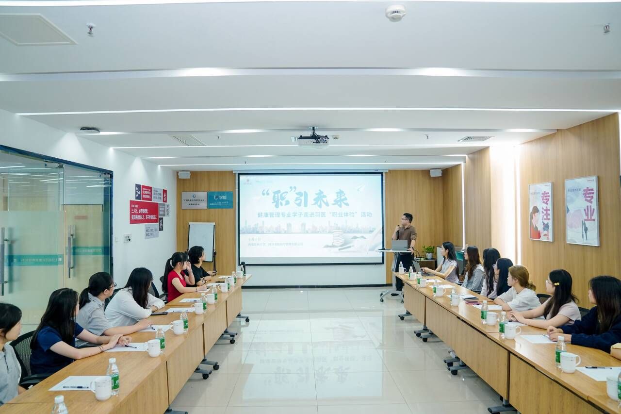9月27日,同学们前往四川羽医医疗管理有限公司,了解了公司的机构配置、人员分配、部门运作及场地建设。随后,该公司职工——我校2018级毕业生龚宇龙作了“羽衣健康五星服务”讲解,杨蕊溪分享了办公软件在实际工作中的应用经验,新媒体运营部总监姜蕾蕾介绍了健康管理科普宣传的方法与技巧。丰富的讲解和案例分享让同学们感受到专业知识在实践中的价值。在互动交流环节中,同学们积极提问,思考职业发展方向,并与成都中医药大学健康管理专业同学分享交流,收获颇丰。