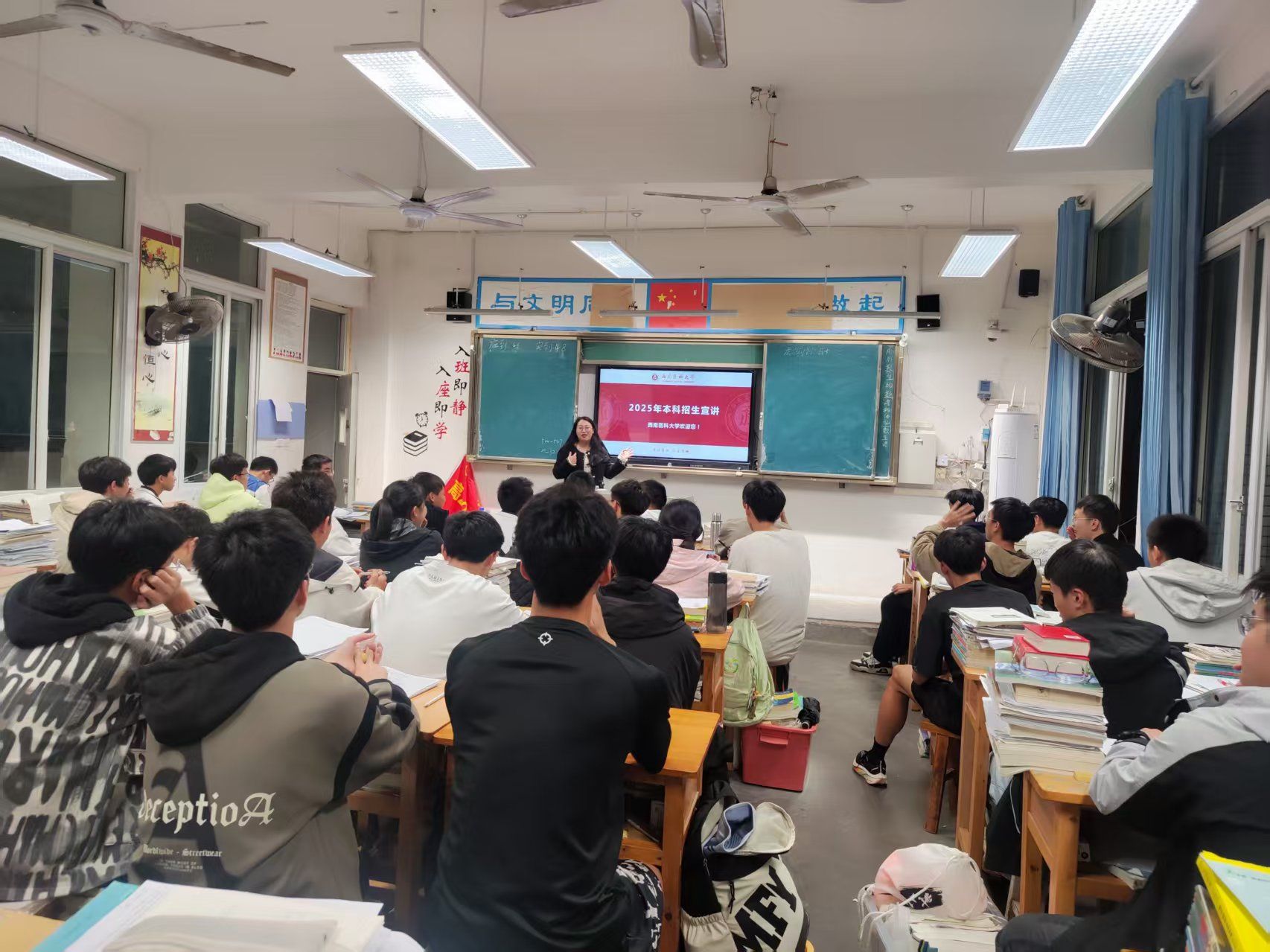 为增进高校与中学的互动交流,扎实推进招生宣传工作。10月30日-31日,医学信息与工程学院辅导员彭雪梅奔赴宜宾市江安县江安中学、江安县第四中学开展招生宣讲活动。