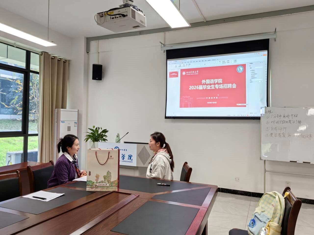 经外国语学院组织,中创新航科技集团股份有限公司于11月4日在文渊楼134教室举办了专场招聘面试。此次面试由中创新航科技集团股份有限公司招聘主管宋敏主持,包括英语专业在内的全校各专业30余名学生提交了简历并参加面试。