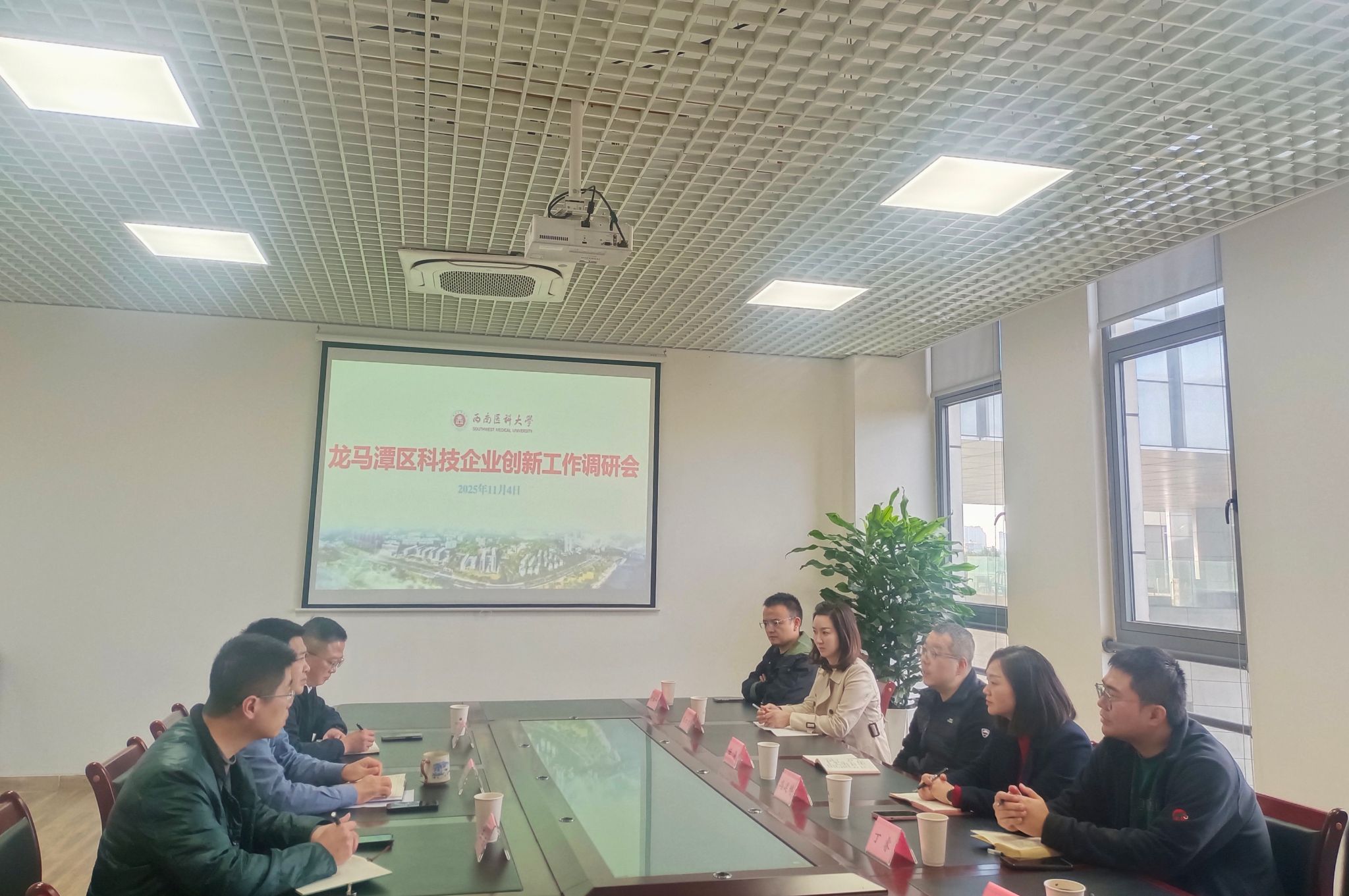 11月4日,龙马潭区副区长任涛一行到西南医科大学国家大学科技园考察调研科技企业创新工作。