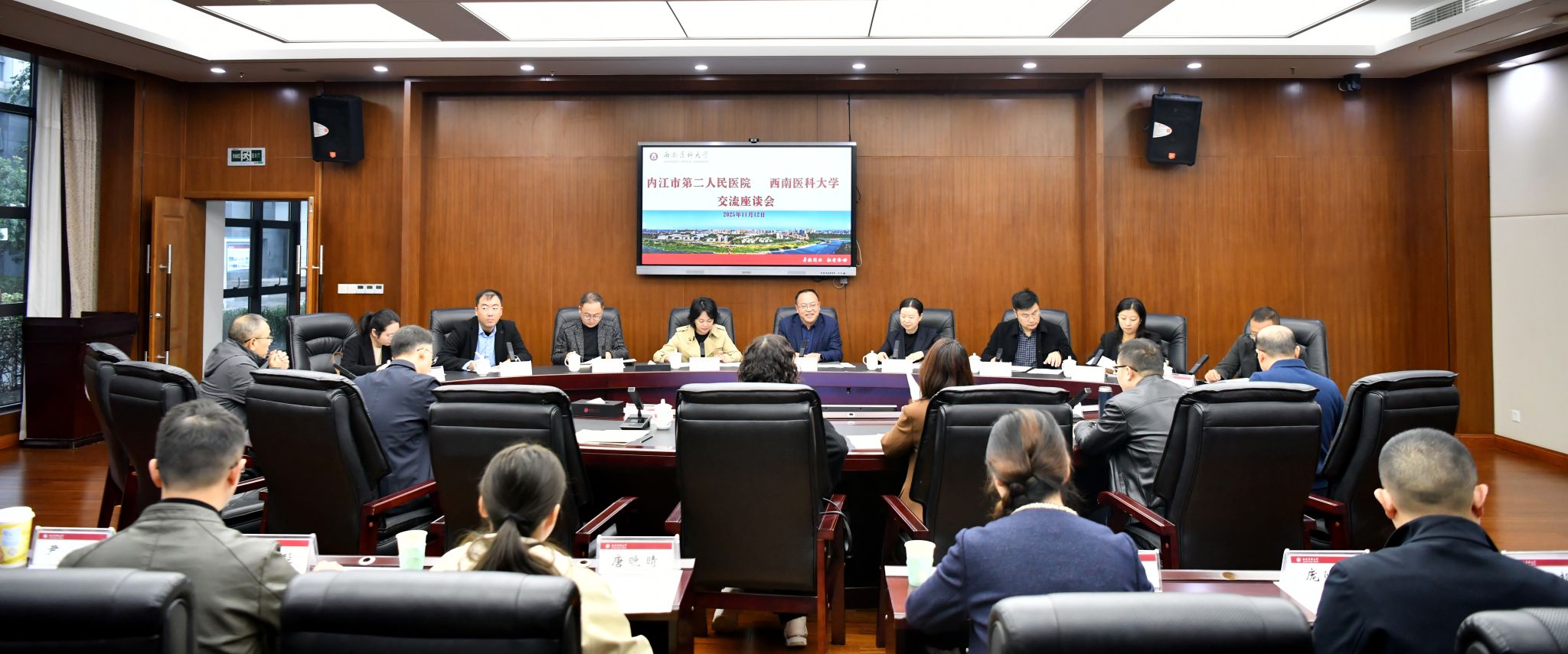 内江市第二人民医院党委书记杨盛国,党委副书记、院长唐贤文,成都三六三医院党委书记陈伟、党委副书记、院长李满分别汇报了医院的近期发展情况及恳请学校支持事项,学校与医院双方围绕教育教学、人才引进、师资队伍、科研合作等问题进行了充分交流,达成了共识。