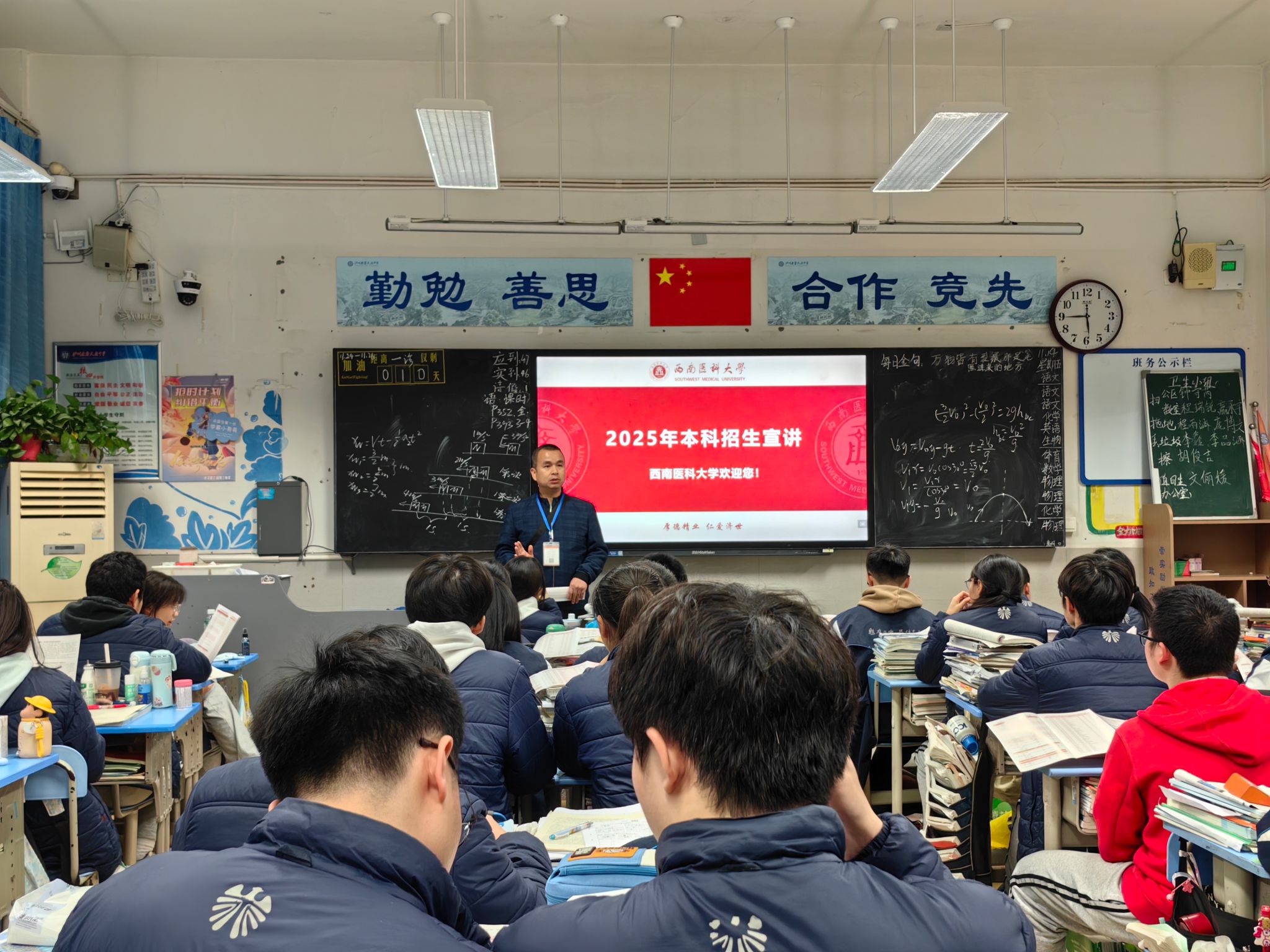 11月14日,外国语学院组织教师赴泸州老窖天府中学开展招生宣传活动。活动通过宣讲、发放资料、互动交流等形式,向泸州老窖天府中学学生宣传、展示西南医科大学外国语学院的学科特色与学科优势,搭建两校友谊合作的桥梁。