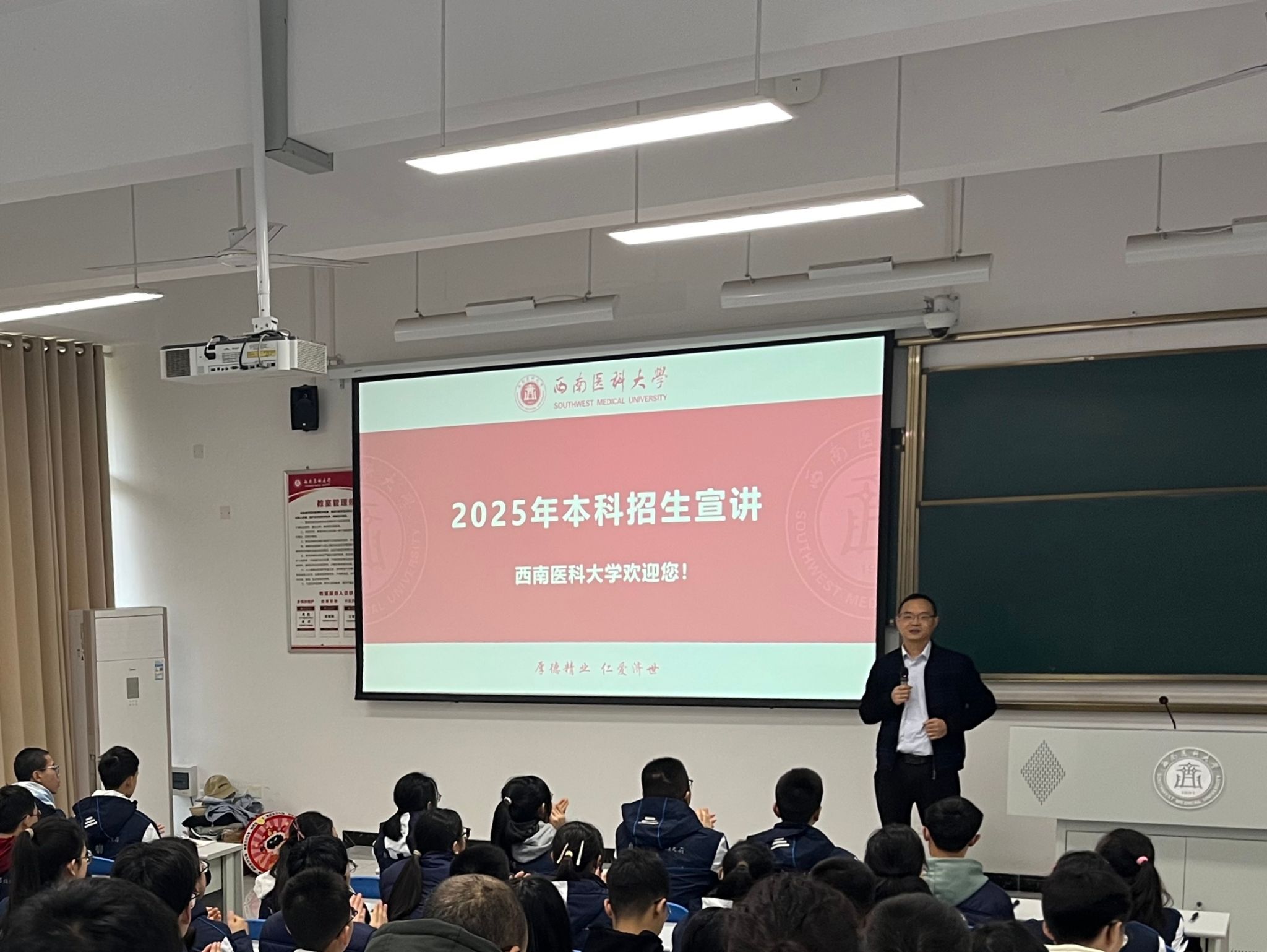 11月23日,泸州老窖天府中学师生代表来到我校城北校区开展参观交流活动。此次活动由我校学生工作部与泸州老窖天府中学共同主办,基础医学院协办,旨在增进高中学生对医学专业的了解,拓展职业视野,搭建高校与高中育人衔接的桥梁。