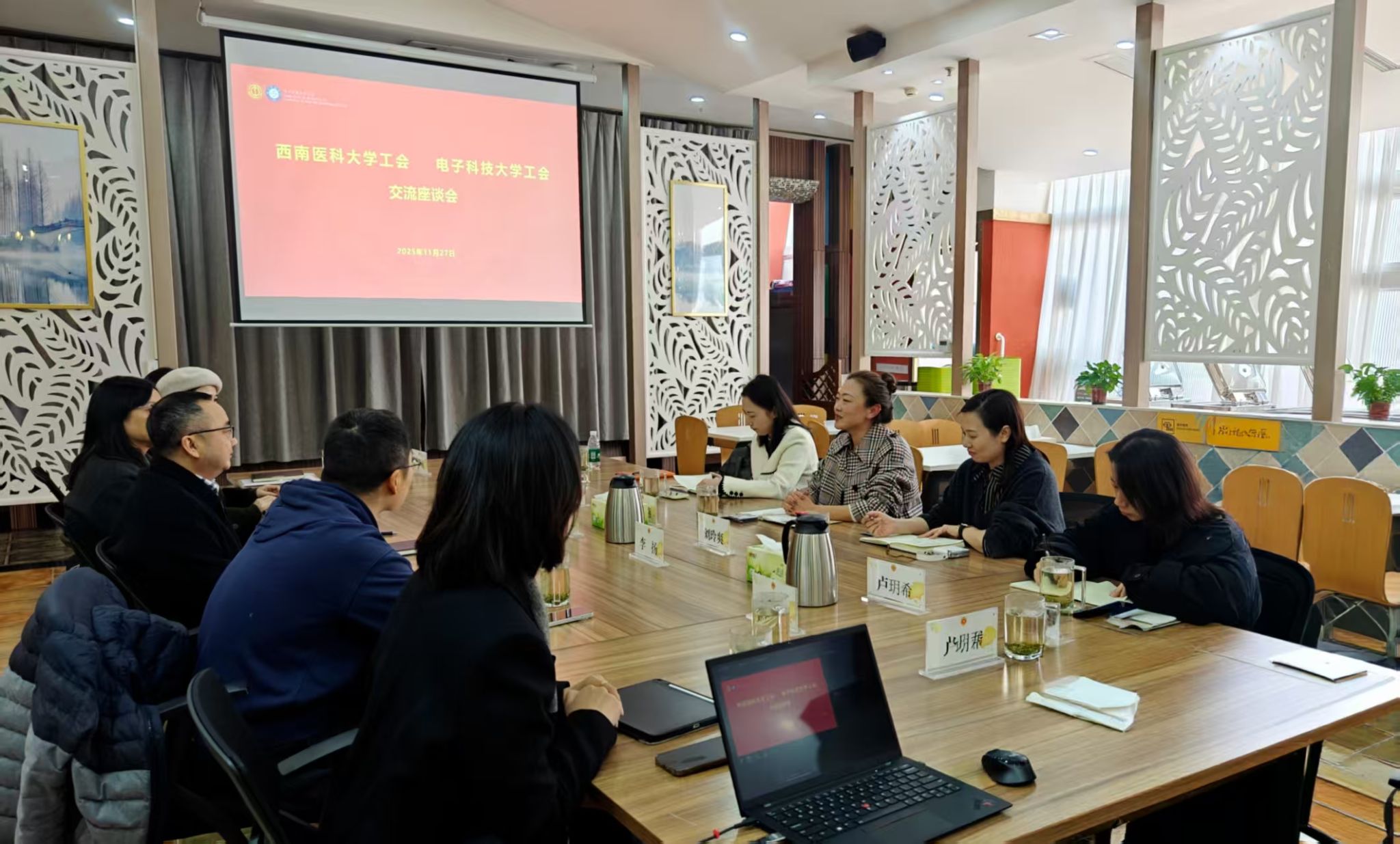 为进一步拓宽工会工作思路、提升服务效能,11月27日,学校工会常务副主席张晓燕率队,副主席刘玲爽及工会人员一行5人赴四川大学、电子科技大学开展考察交流,重点交流两校在教职工之家建设、民主管理、福利采购、品牌活动打造及数字化转型等方面的创新实践。