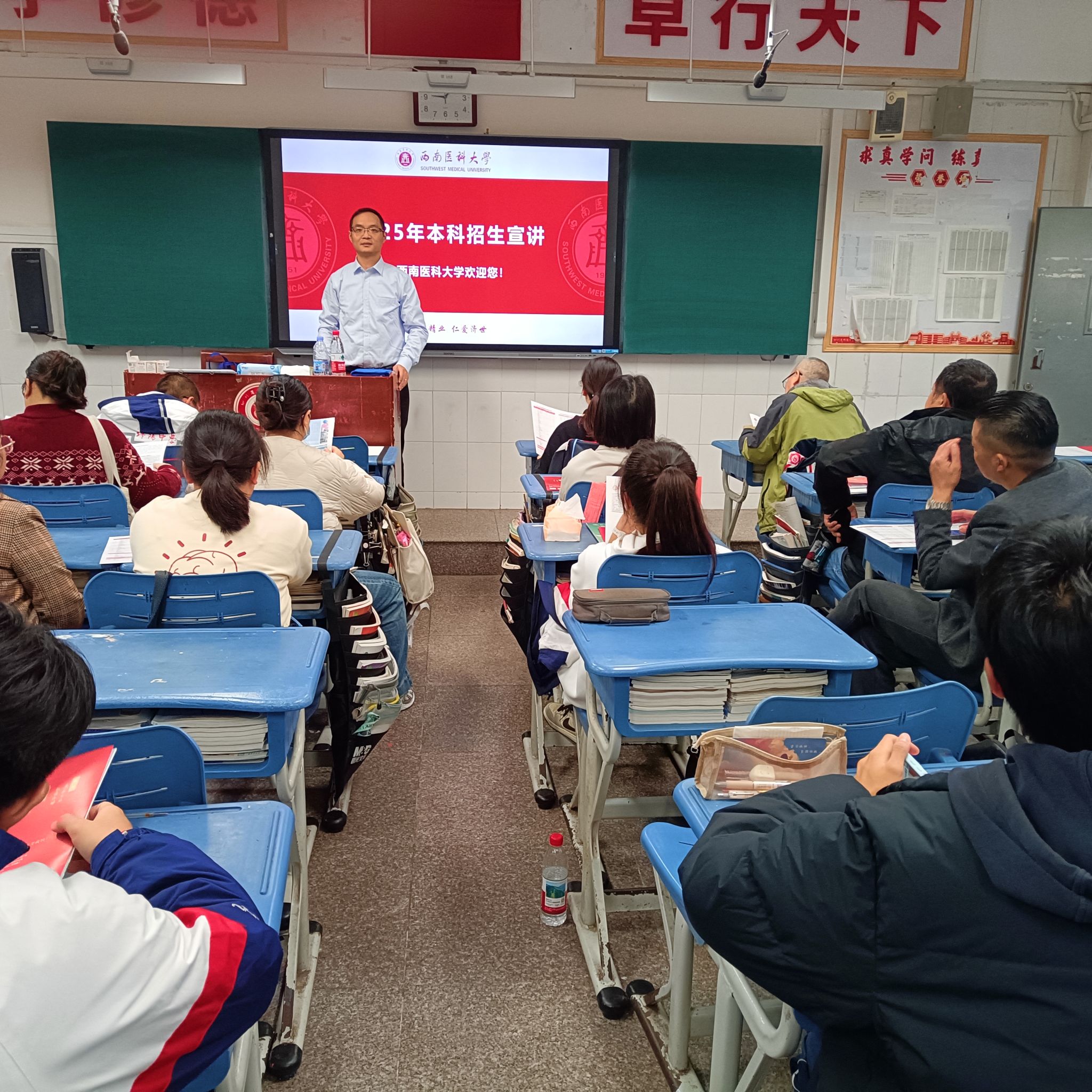 为持续提升我校在绵阳市的招生影响力,吸引更多优秀绵阳学子报考,近日,西南医科大学基础医学院一行人在基础医学院党委副书记崔继东的领导下深入绵阳中学、绵阳中学实验学校进行2026年本科生招生宣讲。