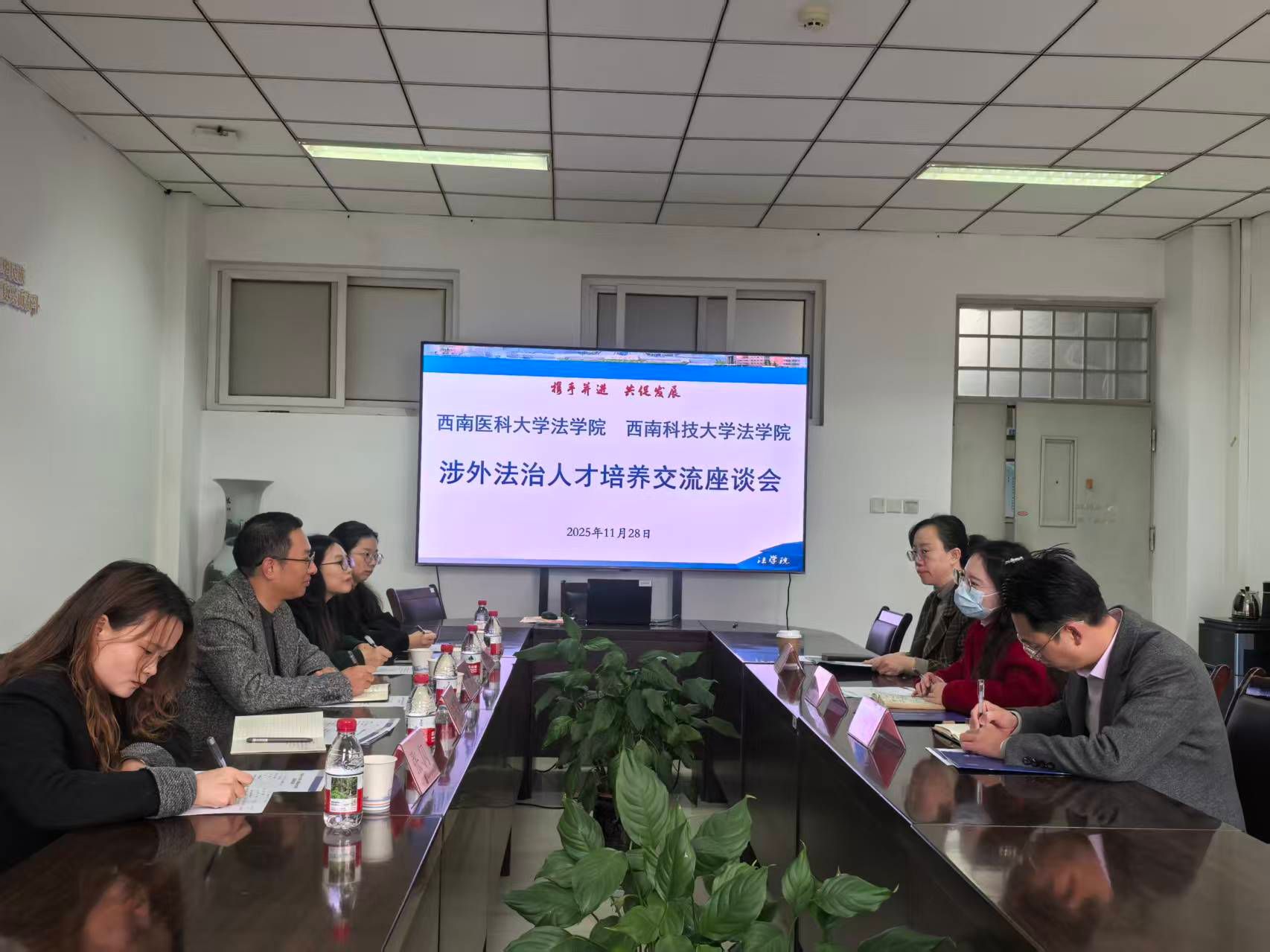 为学习借鉴兄弟院校先进办学经验,进一步提升学院治理水平和人才培养质量,11月28日,法学院党委副书记、院长罗刚、副院长羊海燕率学院相关科室负责人一行,赴对标学校西南科技大学法学院进行考察交流。