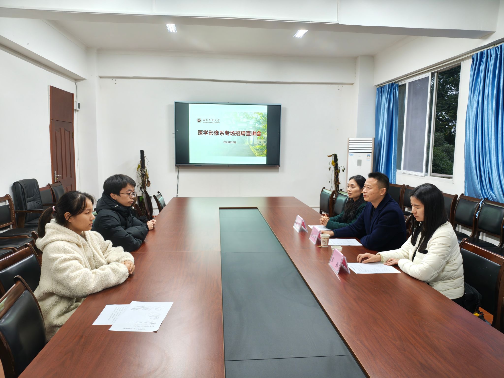 为拓宽学生就业渠道,促进毕业生高质量充分就业,12月3日,医学影像系在忠山校区含光楼304室举办了龙马潭区人民医院专场招聘宣讲会。龙马潭区人民医院党委书记侯云清、放射科主任徐燕、主治医师肖燕,医学影像系党总支书记刘秀、系主任舒健、学生科副科长黄敏及2026届毕业生代表共同参会。
