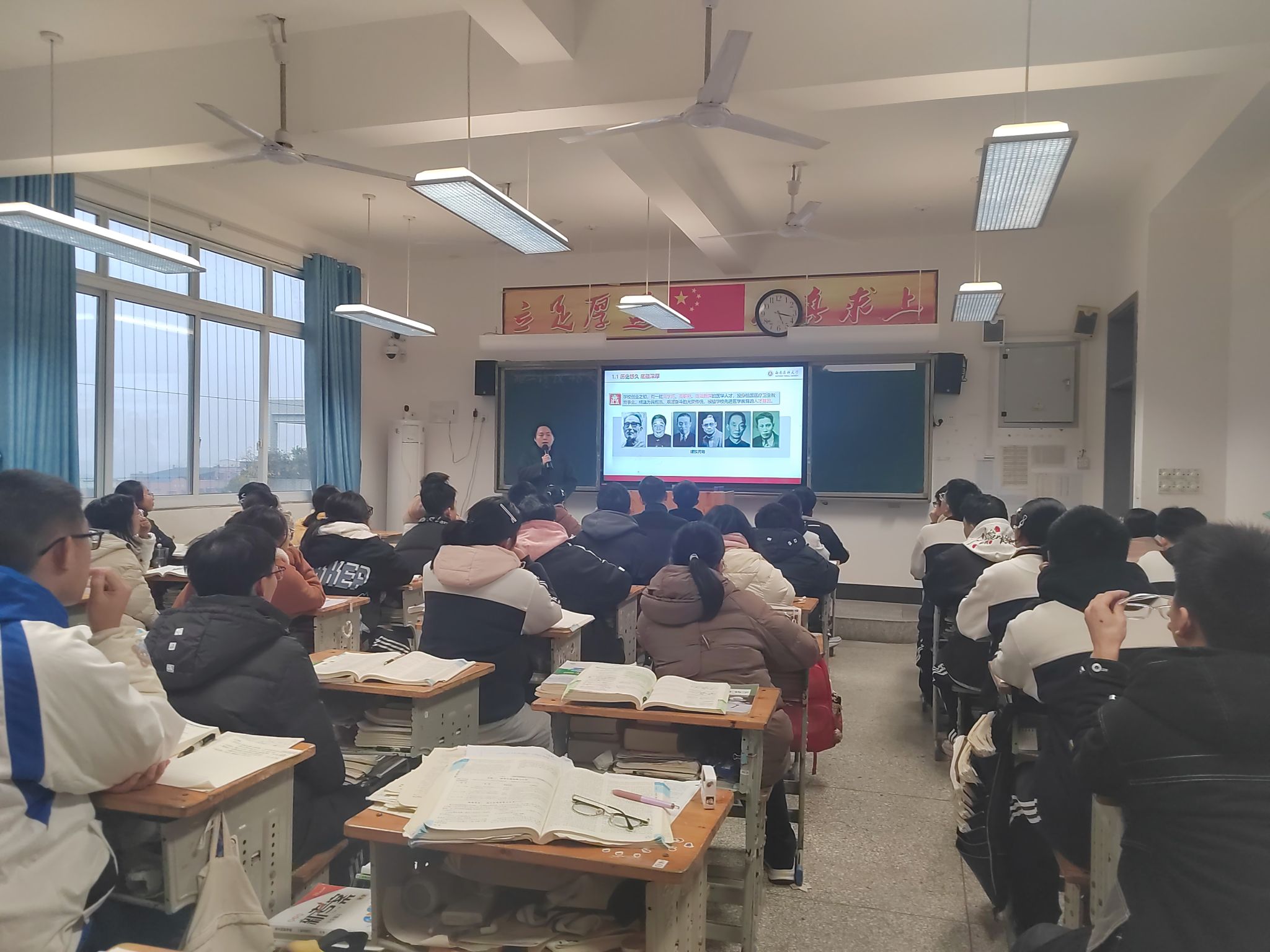 邓盛木在宣讲中介绍了西南医科大学的概况,详细解读了我校专业优势和办学特色,以及近年招生录取情况。根据现场师生要求,邓盛木对2025年高考招生录取分数在四川省特控线上下的专业进行了重点介绍,并对我校外国语学院进行了详细介绍。随行的胥秋菊老师现场与同学们进行了互动交流。