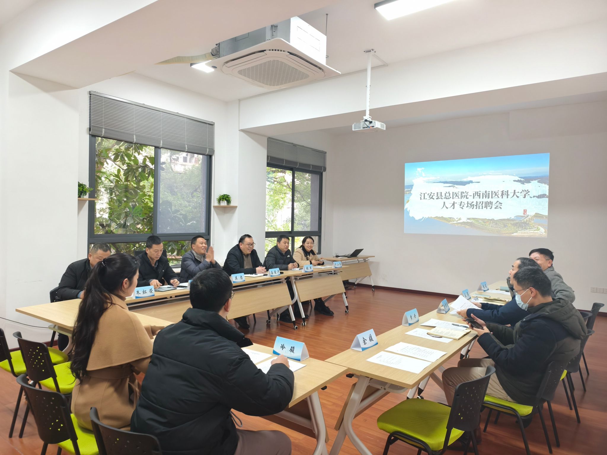 为助力毕业生精准就业, 1月8日,临床医学院联合江安县总医院举办专场招聘会。临床医学院学生党总支书记殷泽登、西南医科大学党委研究生工作部学生科科长余媛、学科建设与研究生管理部部长李丹、学生工作部部长王涛及2026届部分研究生、本科生出席会议。