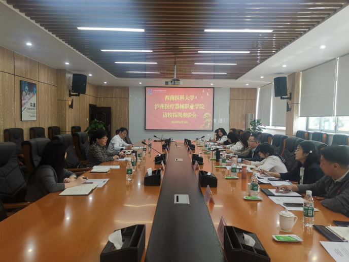 为深入推进毕业生就业工作,精准对接用人单位需求,搭建校校合作与人才输送桥梁,4月16日上午,学校党委研究生工作部部长˙研究生院院长罗茂带队,副部长陈刘流及临床医学院、中西医结合学院等9个二级研究生培养单位分管就业工作的负责人及工作人员。一同赴泸州医疗器械职业学院开展访校拓岗交流活动。座谈会在泸州医疗器械职业学院行政楼二楼 210 会议室举行,座谈会由泸州医疗器械职业学院院长鞠梅主持,泸州医疗器械职业学院党政办公室、组织人事处、学生处、实习与继续教育处等相关部门负责人参加了会议。