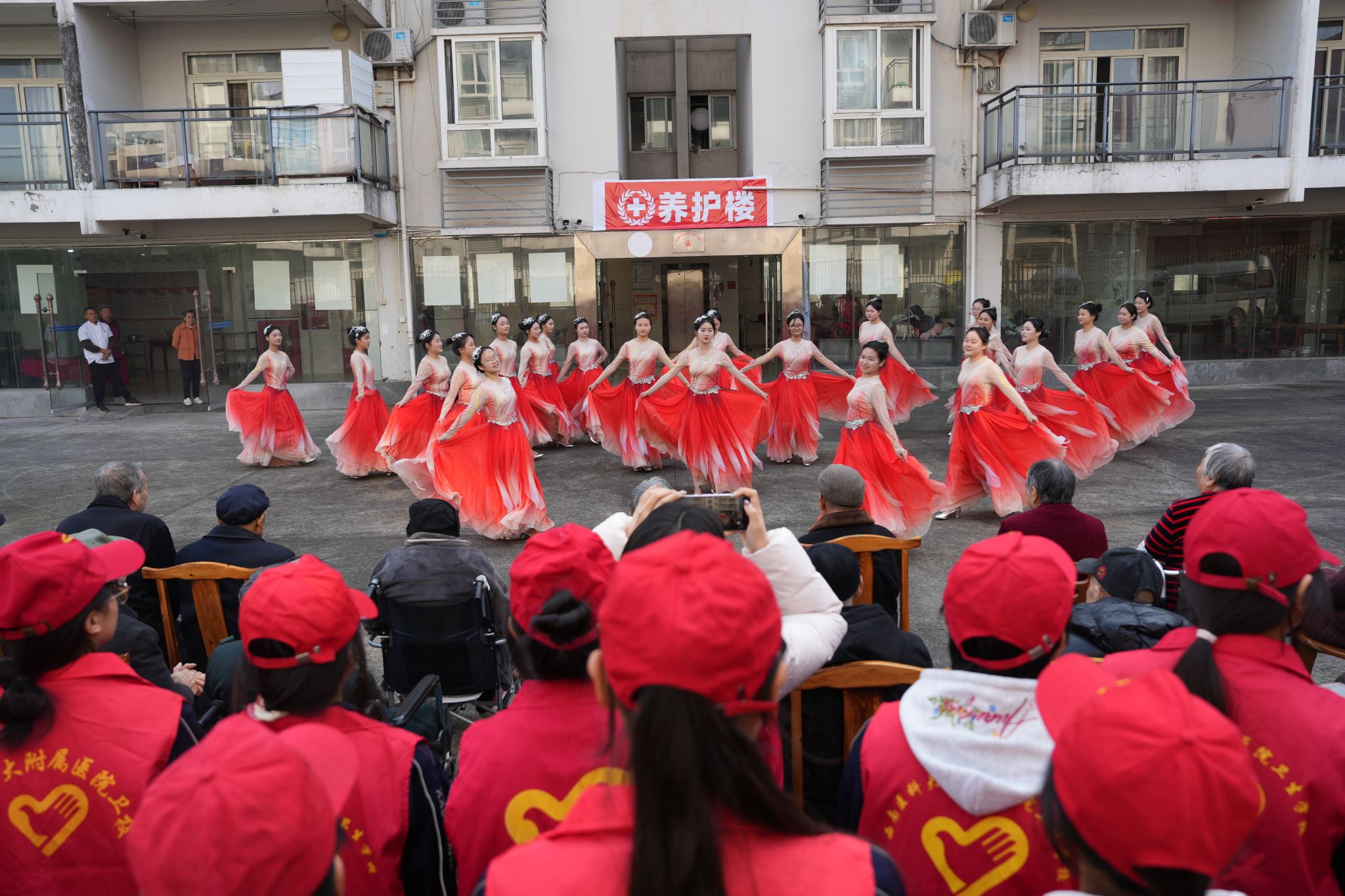 活动伊始,主持人以真挚的话语阐述活动初衷,向老年朋友们送上祝福,现场氛围瞬间被温情填满。文艺表演组随即带来精心编排的节目:青春洋溢的舞蹈《上春山》《一路生花》、动人的歌曲《感恩的心》……志愿者们的精彩表演赢得阵阵掌声。表演中穿插互动环节,邀请老人共同挥动手臂跳手势舞、轻声哼唱经典老歌,让记忆中的旋律成为跨越代际的纽带。